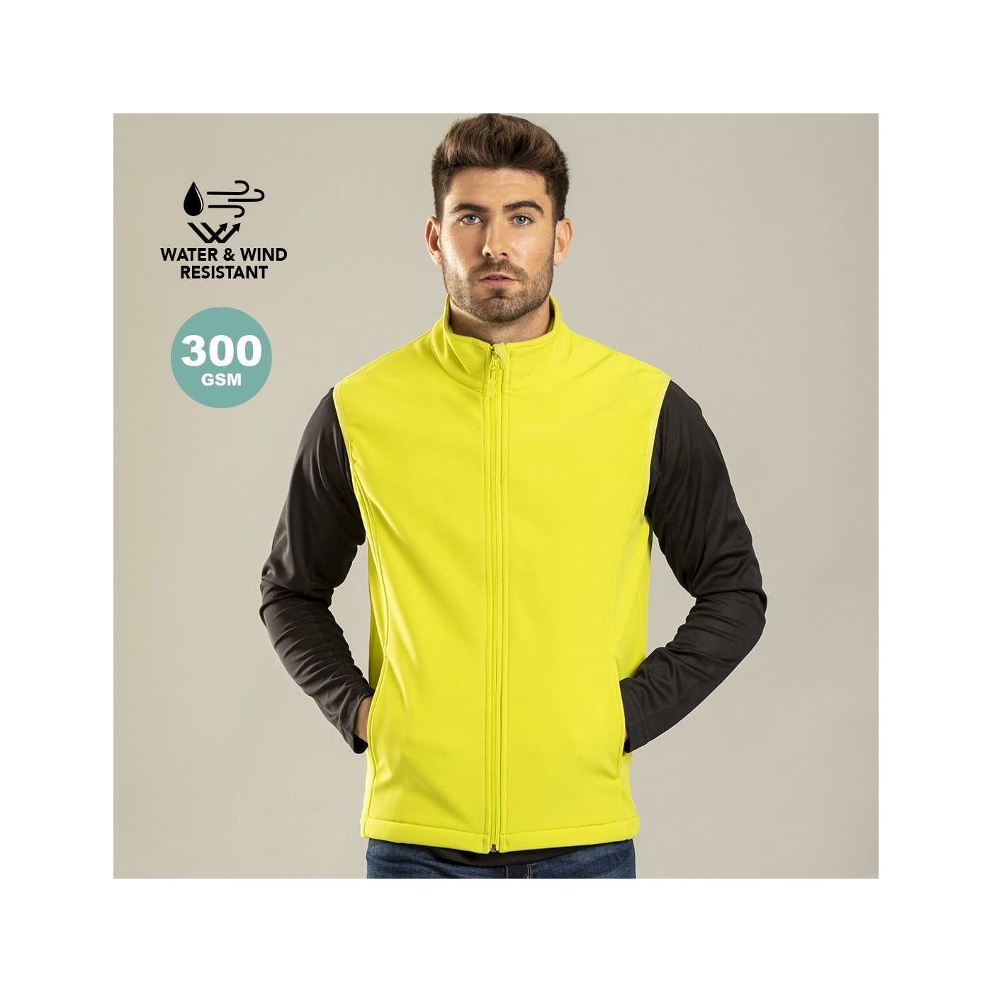 Soft-shell vest at the best price. Waterproof and breathable in combination of soft shell and elastane materials. In a wide range of bright colors, with zip closure and front pockets. Available in sizes S, M, L, XL, XXL.