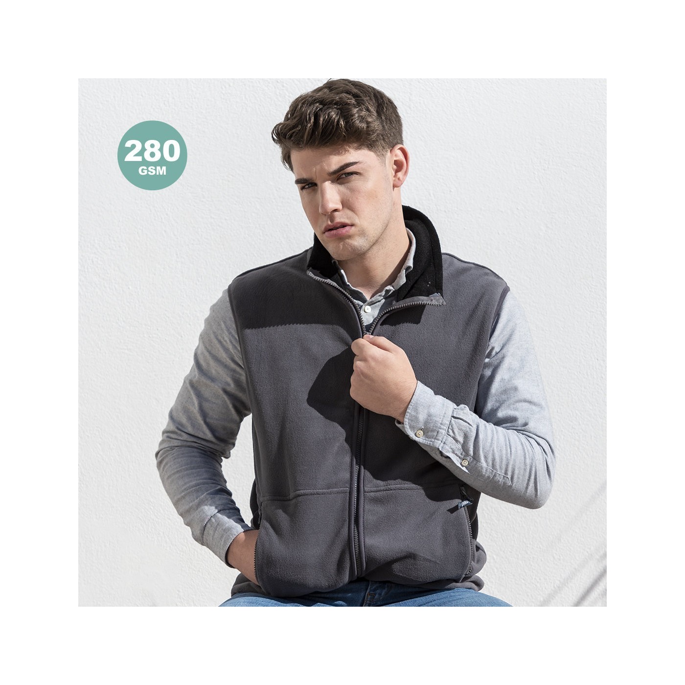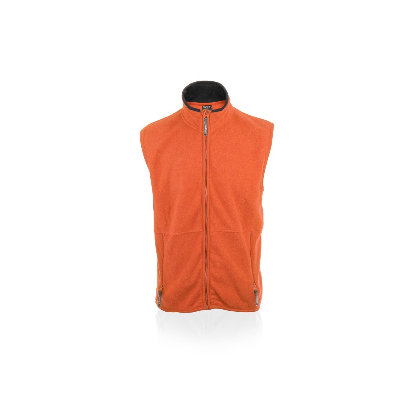 Polar vest at the best price in warm and soft fleece fleece 280g / m2 with anti-pilling treatment. With color inner collar, zip closure with strap on strap, side zip pockets and elastic waist. Available in sizes M, L, XL, XXL.