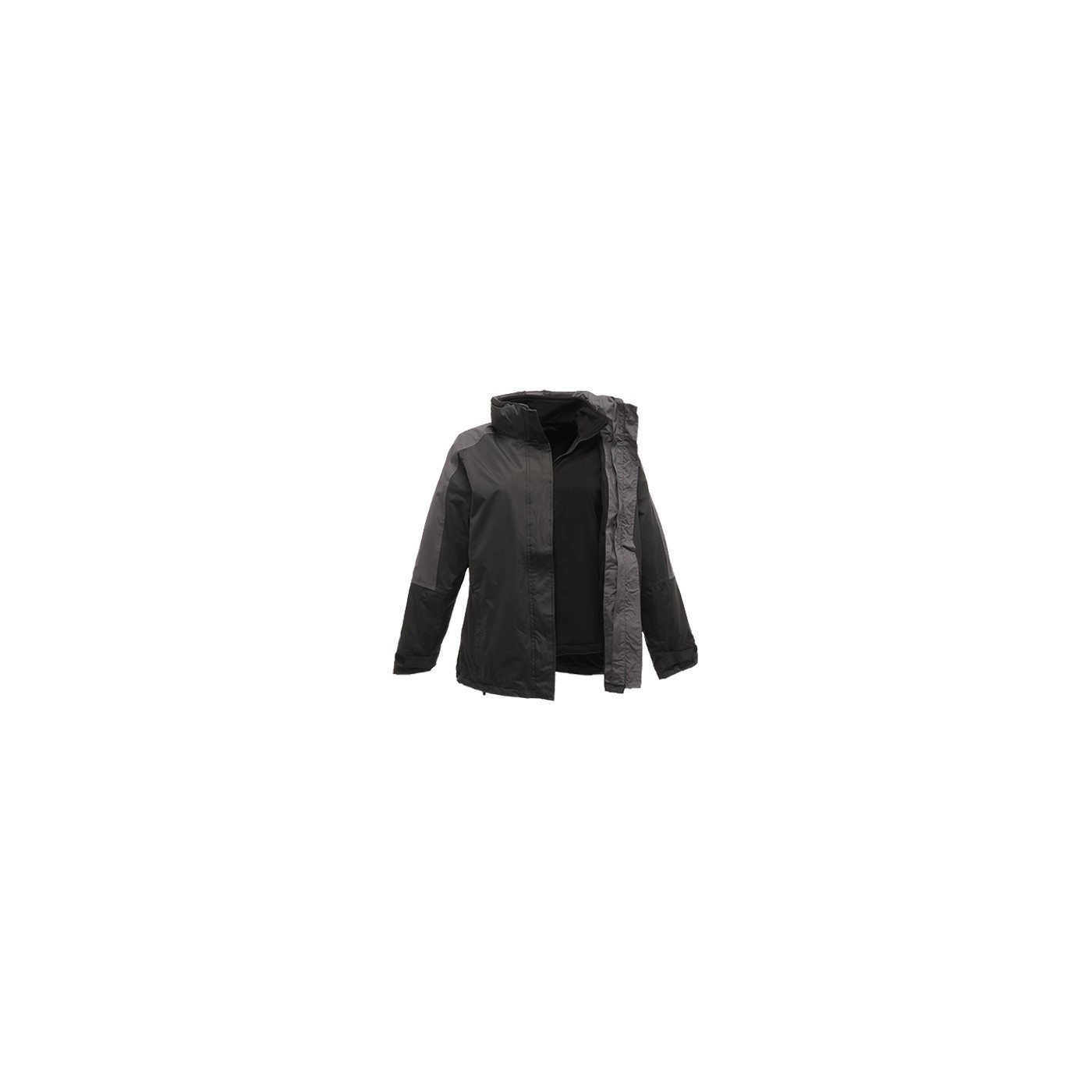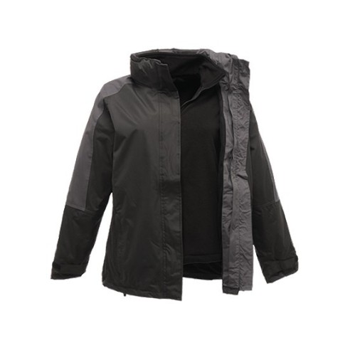 3-in-1 coat jacket with contrasting shoulders. Waterproof and windproof fabric with removable inner fleece.