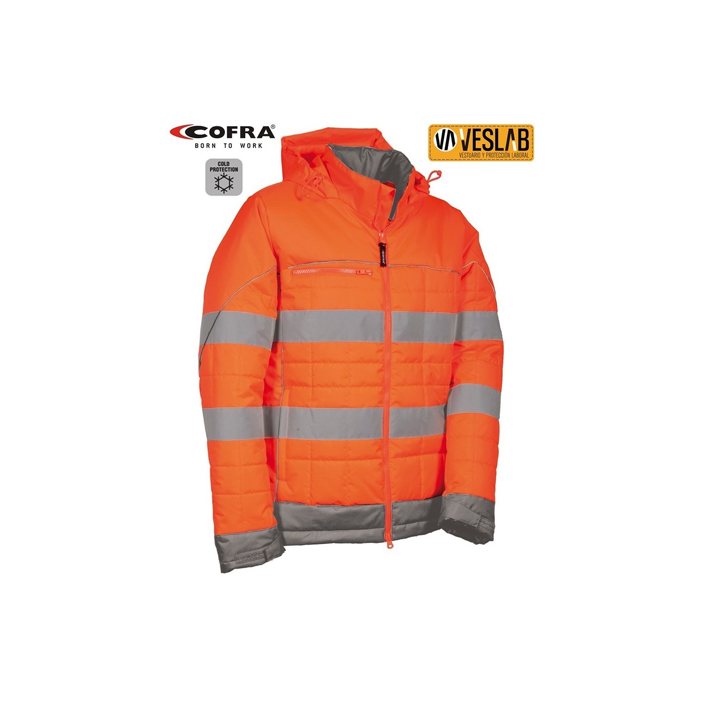 It is a padded hi-vis jacket with ergonomic design. Indicated for personnel exposed to vehicular or machinery traffic (road or construction works), during work activities, in adverse weather conditions: Airports, high visibility, railways, industry, logistics, for cold environments, road works, civil protection , etc...
