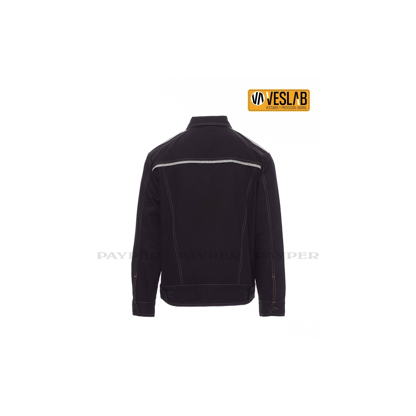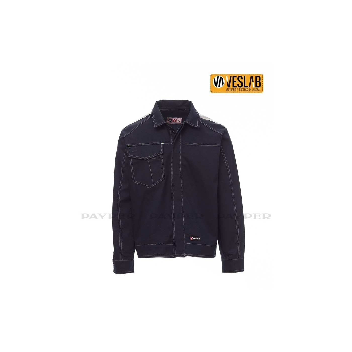 Unisex lightweight work jacket for winter with front zip, plastic buttons and lapel.