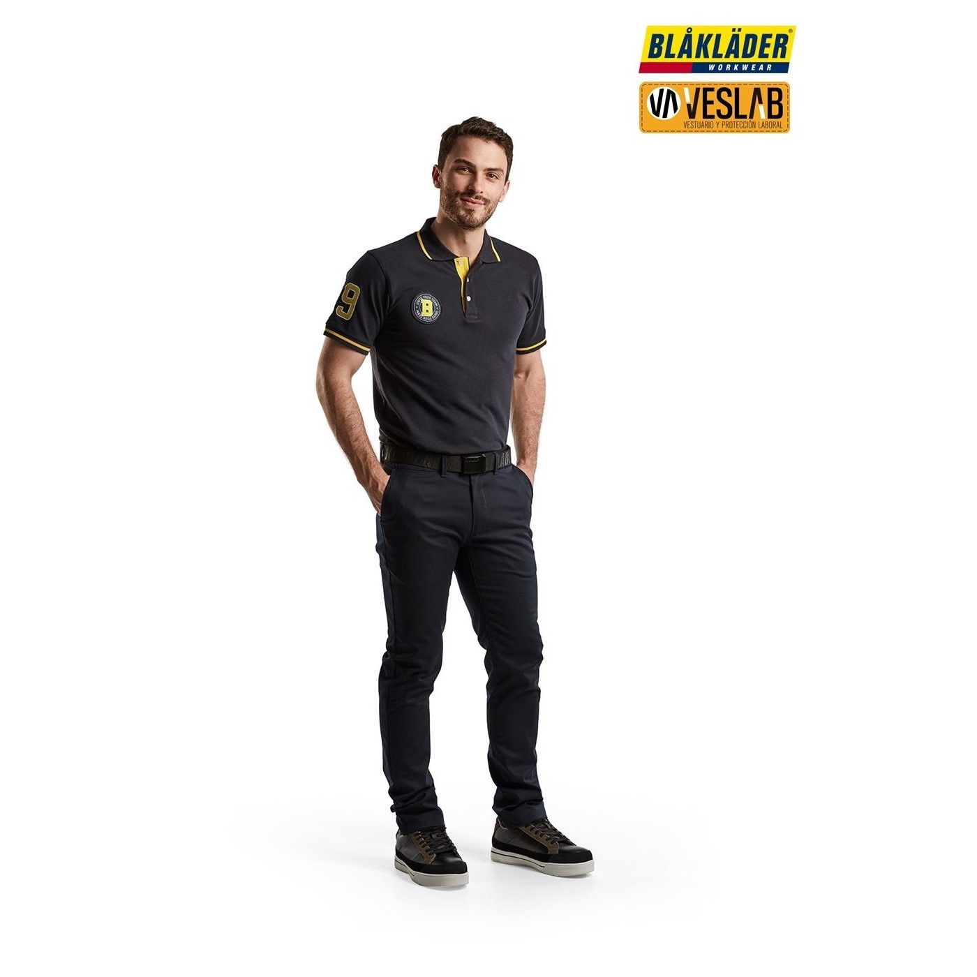 Fully elastic Chino style pants with a slightly narrower fit completely in stretch fabric with a high level of comfort whether you work in a shop, warehouse, or in the field. With a smart zipper pocket. These pants can withstand industrial washing.