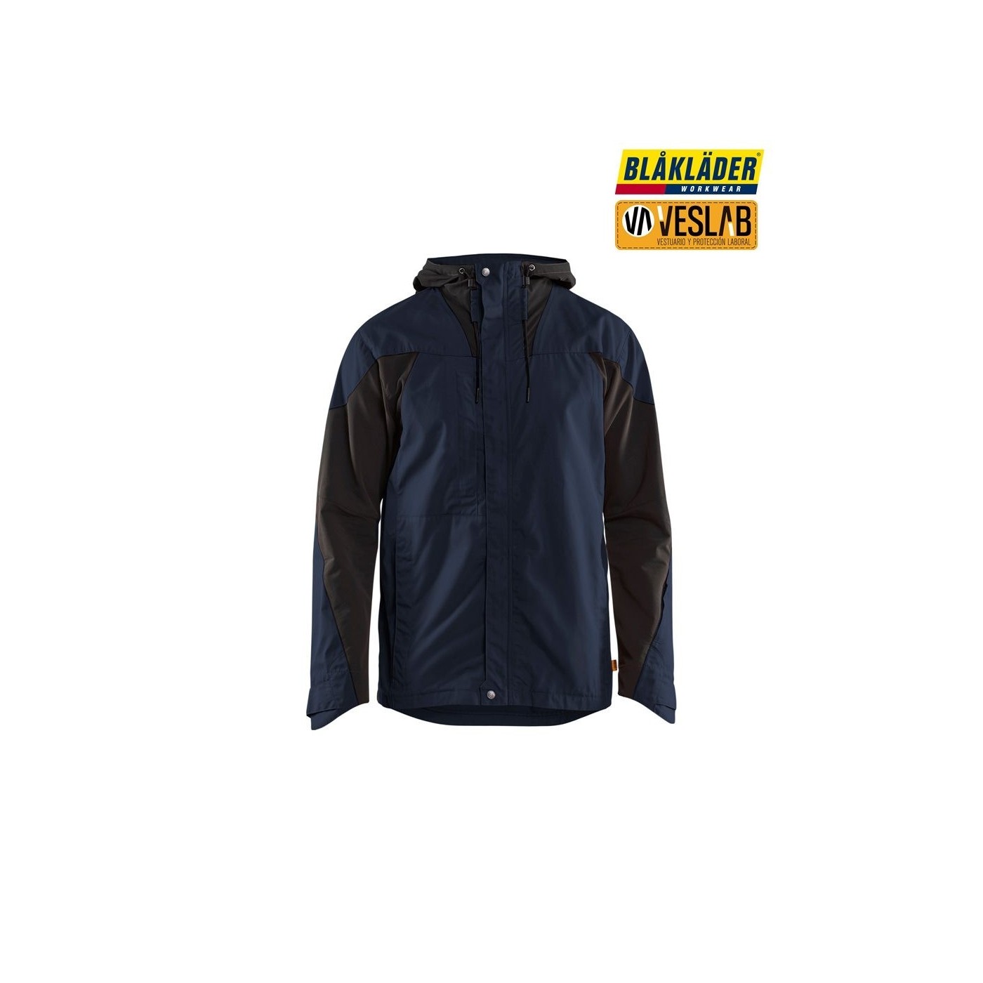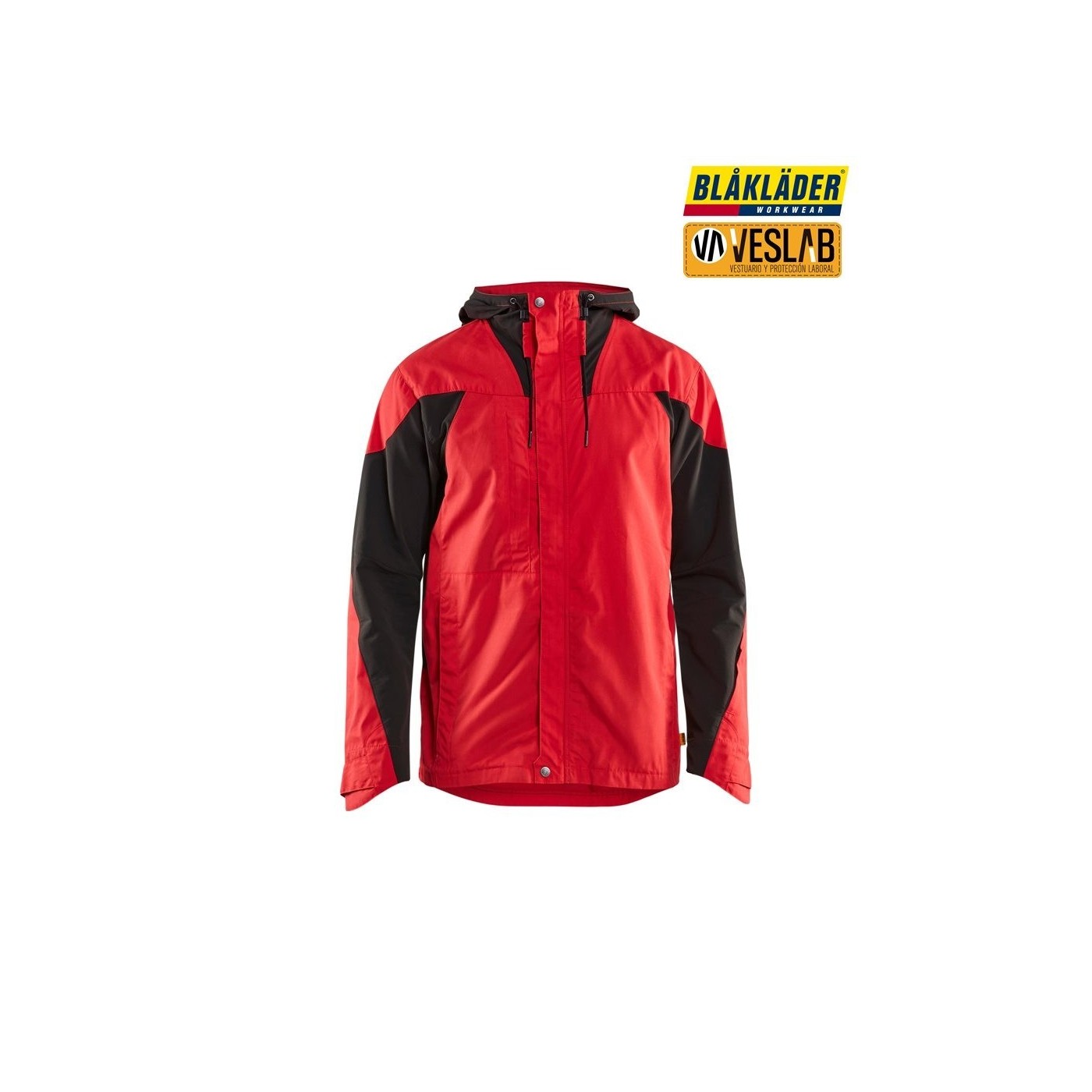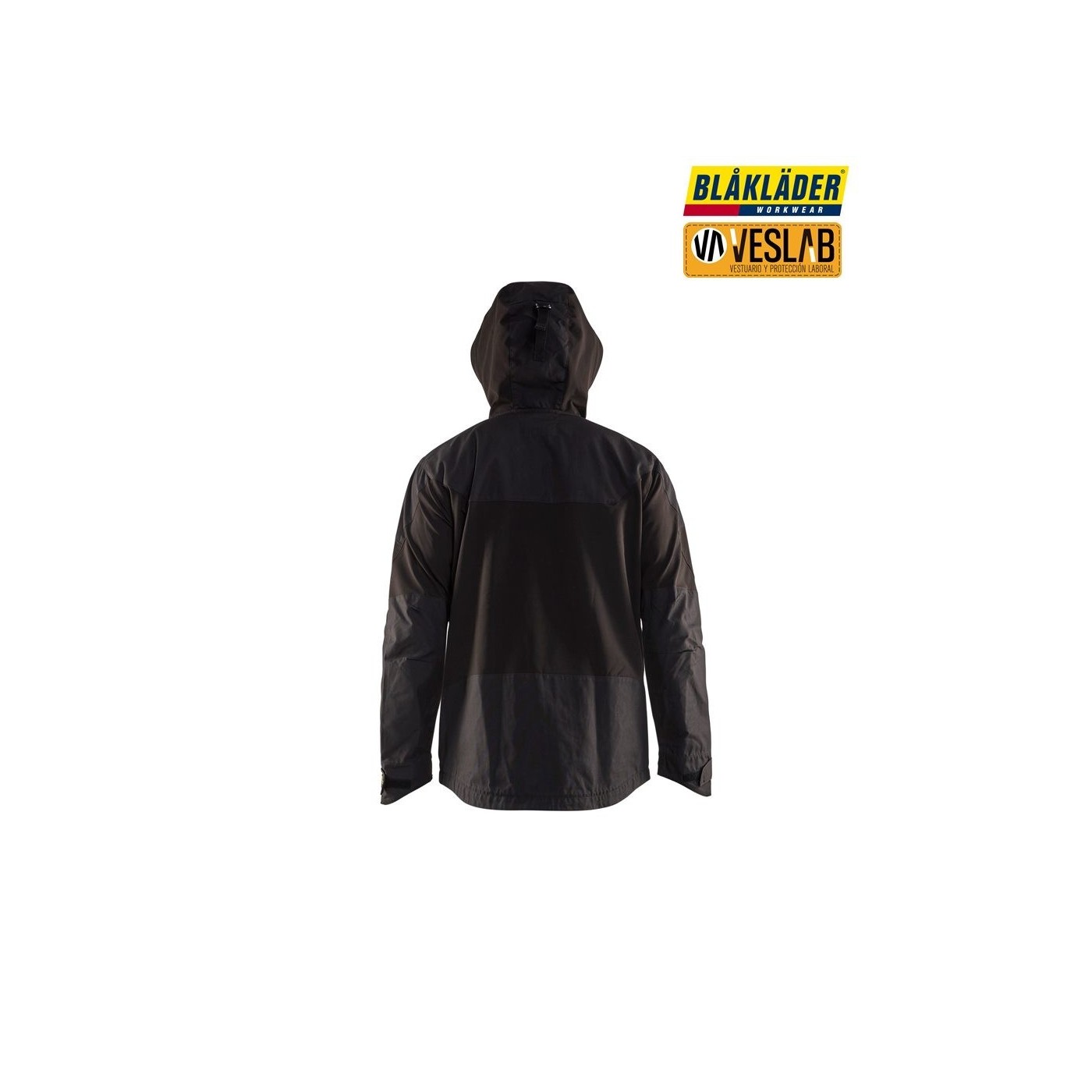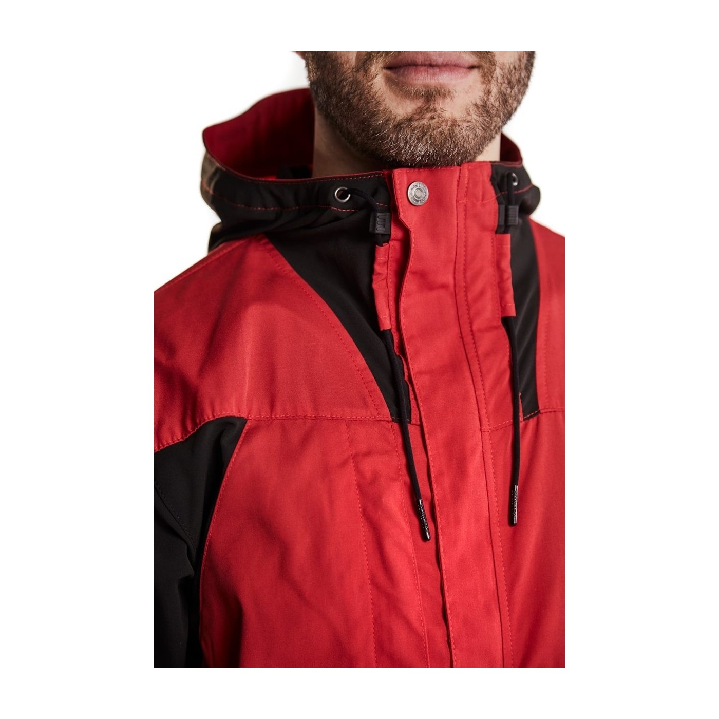 It's fitted cut with an extended back and an adjustable hood. For added flexibility, it has stretch panels on the back, sleeves and hood. The fit can be tightened at the bottom with a practical drawstring and it has ergonomically designed hems that are adjustable with velcro.