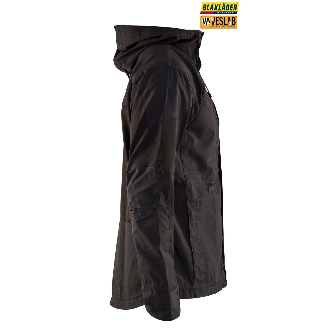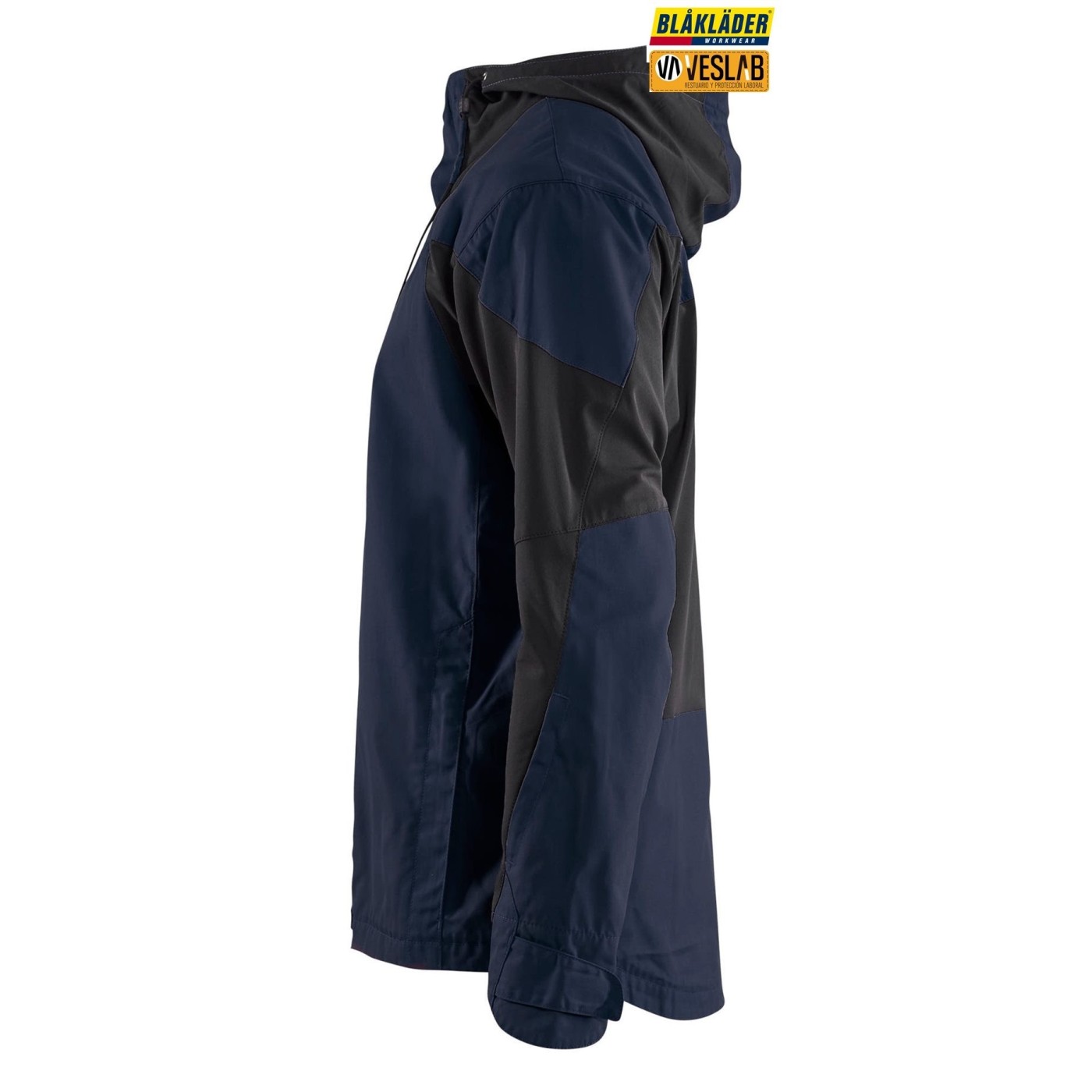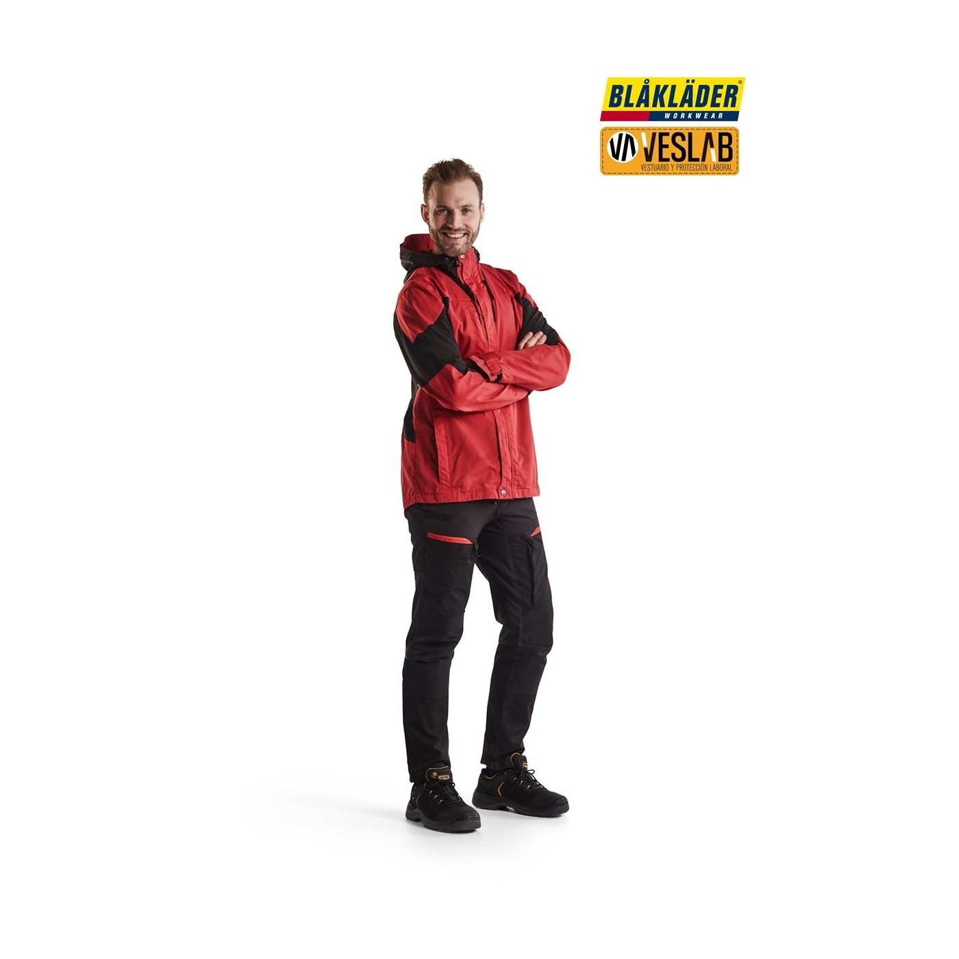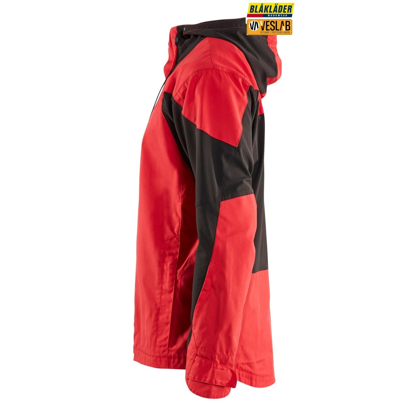 It's fitted cut with an extended back and an adjustable hood. For added flexibility, it has stretch panels on the back, sleeves and hood. The fit can be tightened at the bottom with a practical drawstring and it has ergonomically designed hems that are adjustable with velcro.