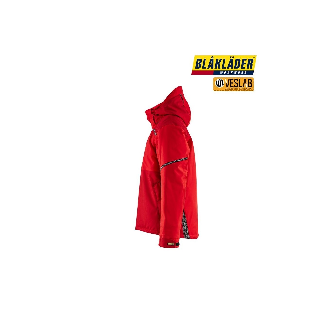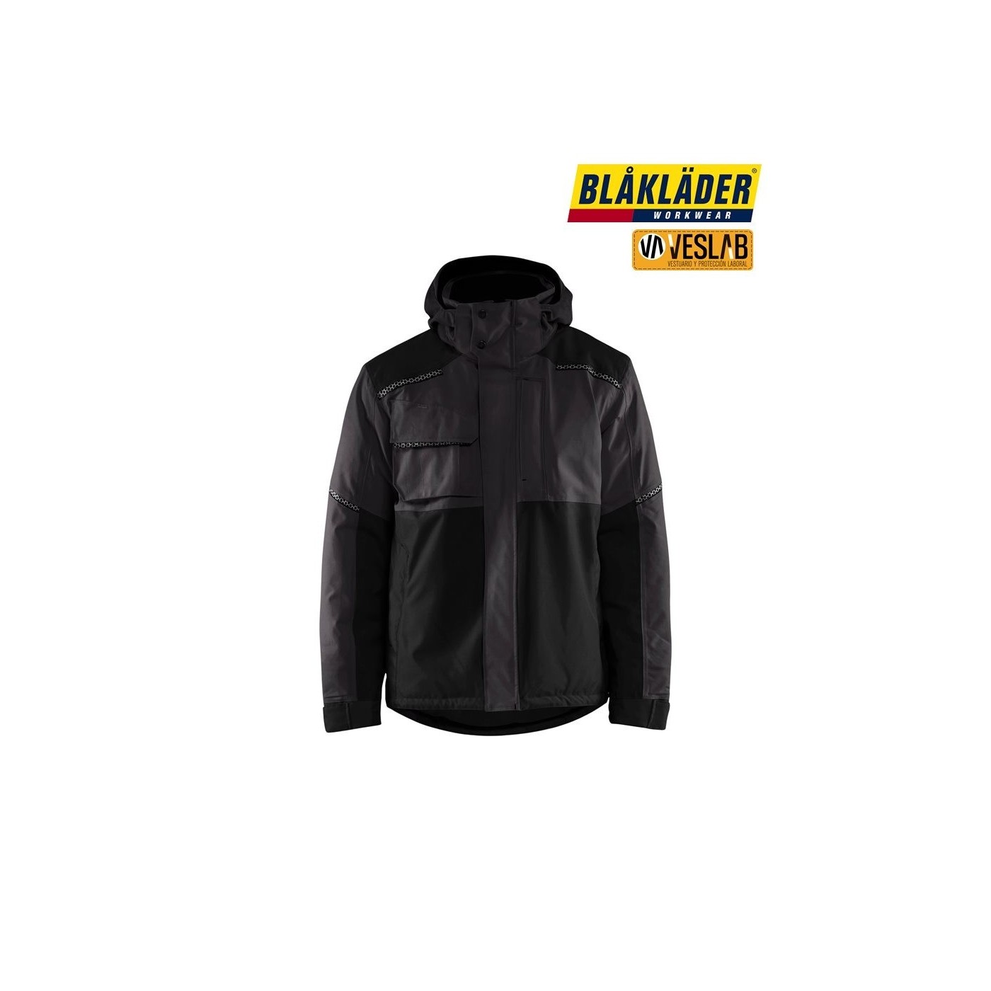 Highly functional, wind- and waterproof winter jacket with taped seams, fleece-lined collar, and removable and adjustable hood. It has mesh panels in the areas of greater perspiration. It has several pockets, for example a chest pocket for pens and mobile phone, an internal pocket and front pockets with fleece lining and zip.