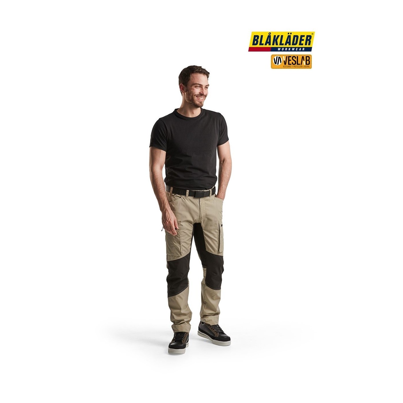 These are very modern service pants made of a lightweight and durable material that dries quickly, making them ideal for working indoors or outdoors in hot climates. The model is more fitted and has pre-bent knees for greater comfort, especially in the bending action.