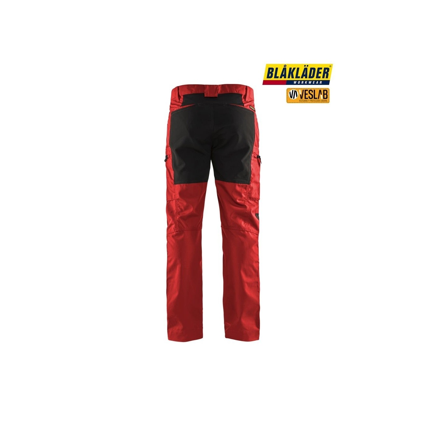 To provide optimal range of motion, the pants have stretch fabric panels in carefully selected locations such as the back, knees, and crotch. The pants have a pocket for pens and knives adapted for right- and left-handed use, a leg pocket with an internal mesh pocket for the mobile phone, and an extension option at the leg hem.