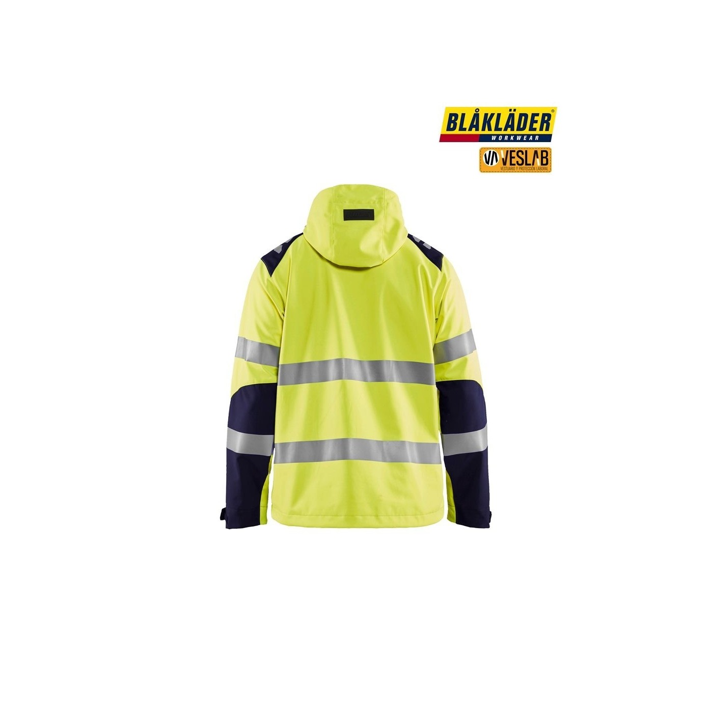 It is a light softshell jacket that thanks to its material is extremely soft, comfortable and flexible. The jacket is bi-colored with contrasting colors in exposed areas for optimal visibility and safety when work activity requires it most.