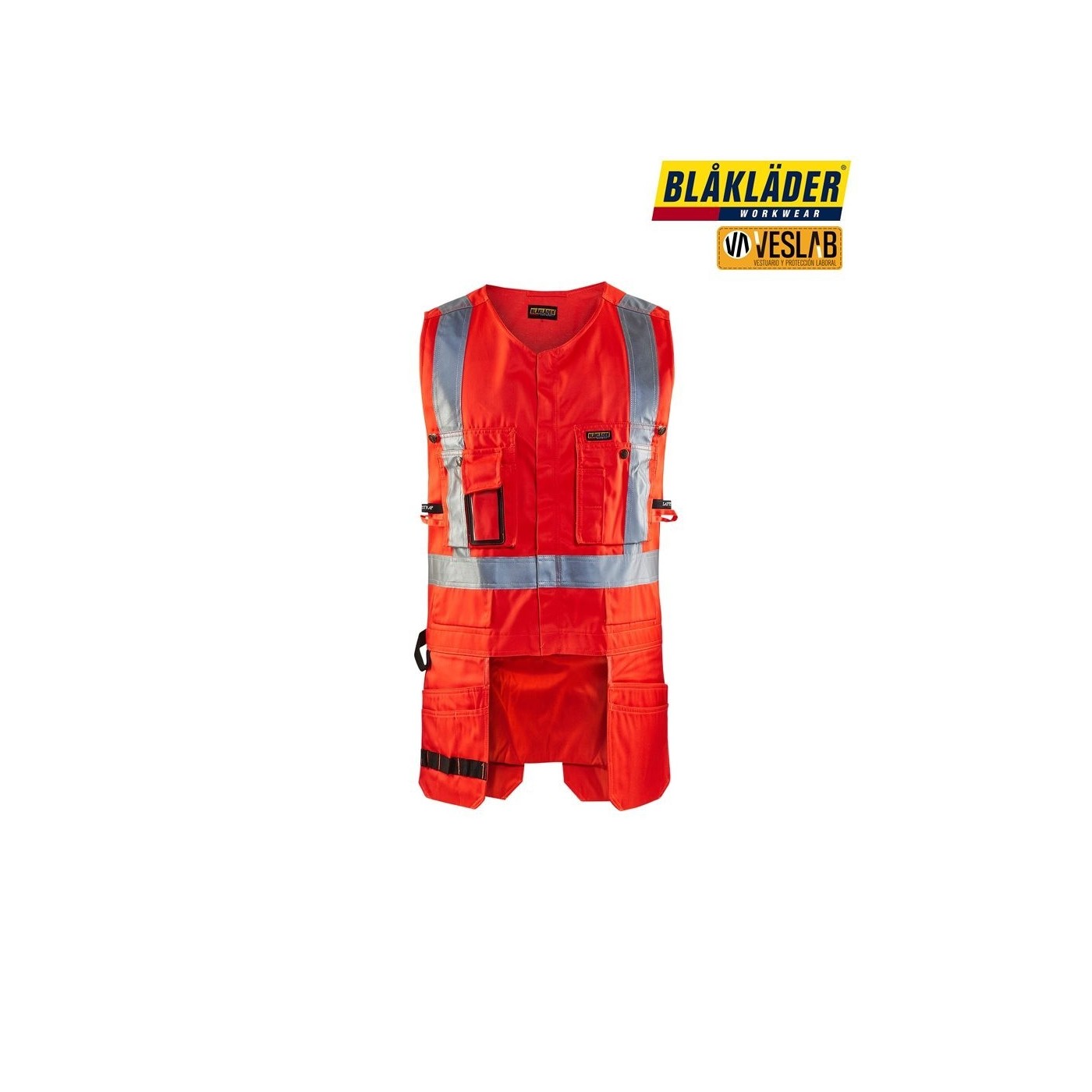 Fluorescent fabric vest. Resistant and flexible at the same time. We guarantee up to 25 washes at 85ºC without losing fluorescence. Certification according to EN471, Class 2.