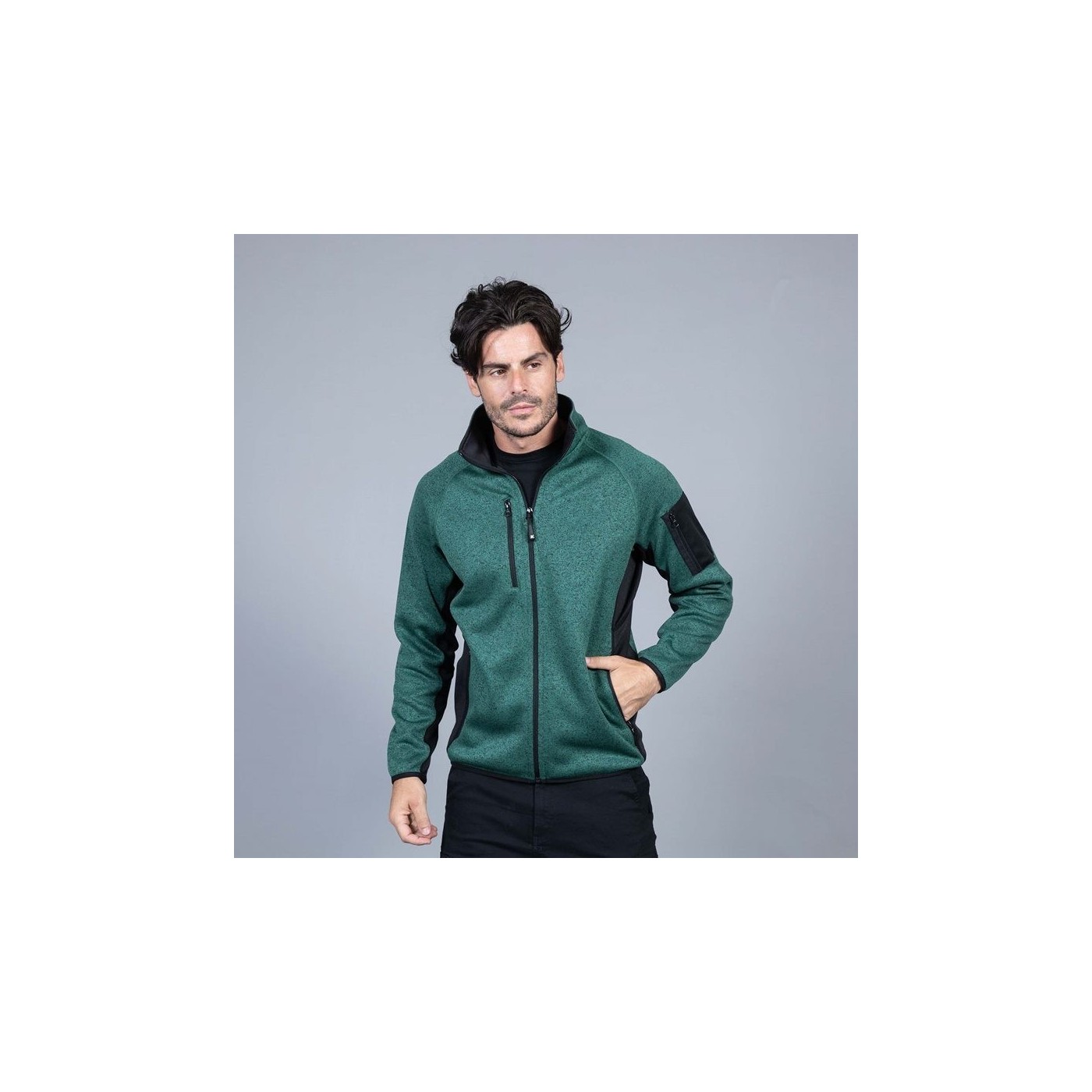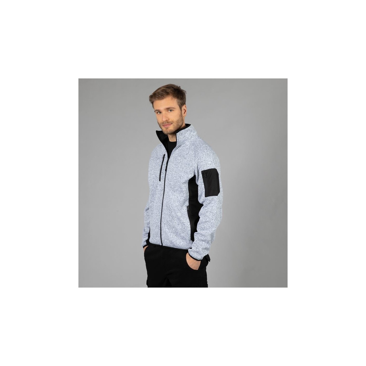 Knitted fleece lining with Stretch fabric inserts. 100% woven polyester with internal carding and stretch fabric inserts on the hips and underarm. Weight: 300 grs / m2.