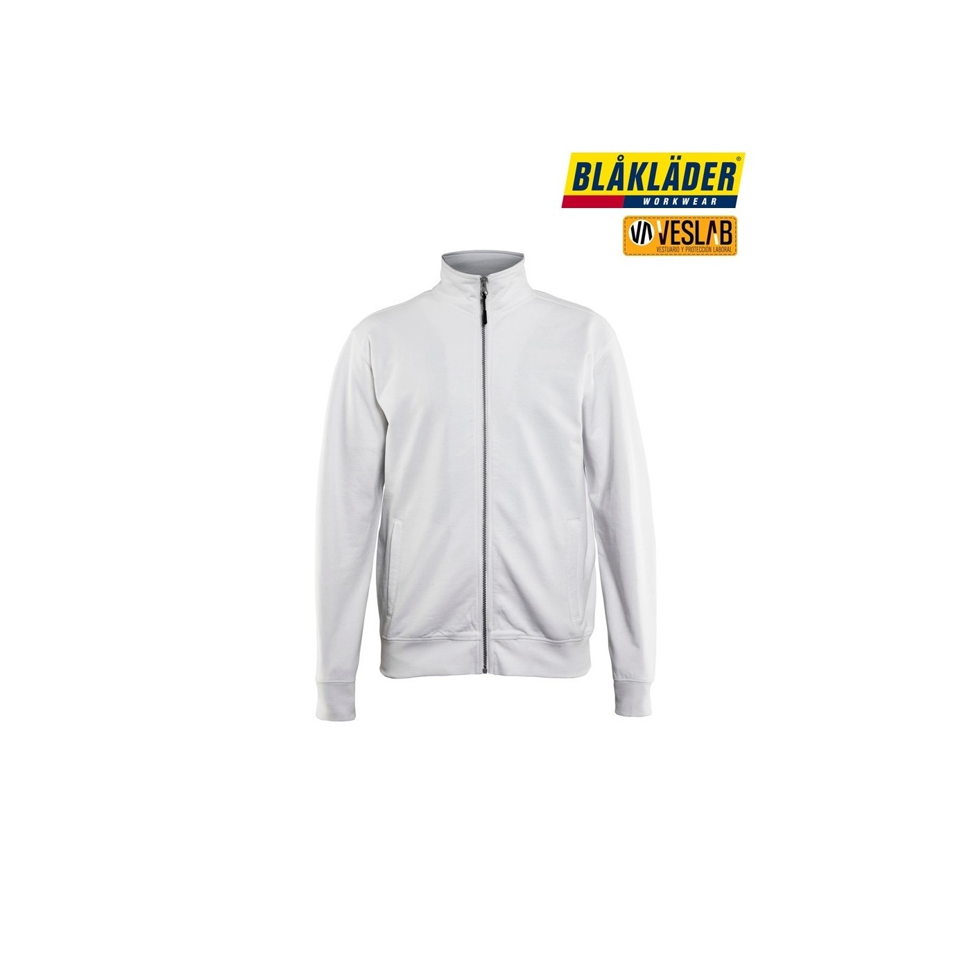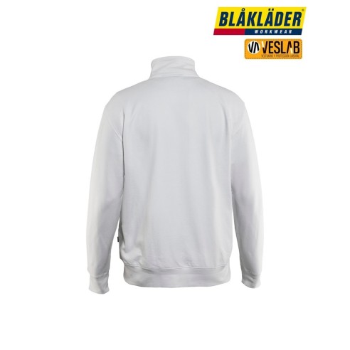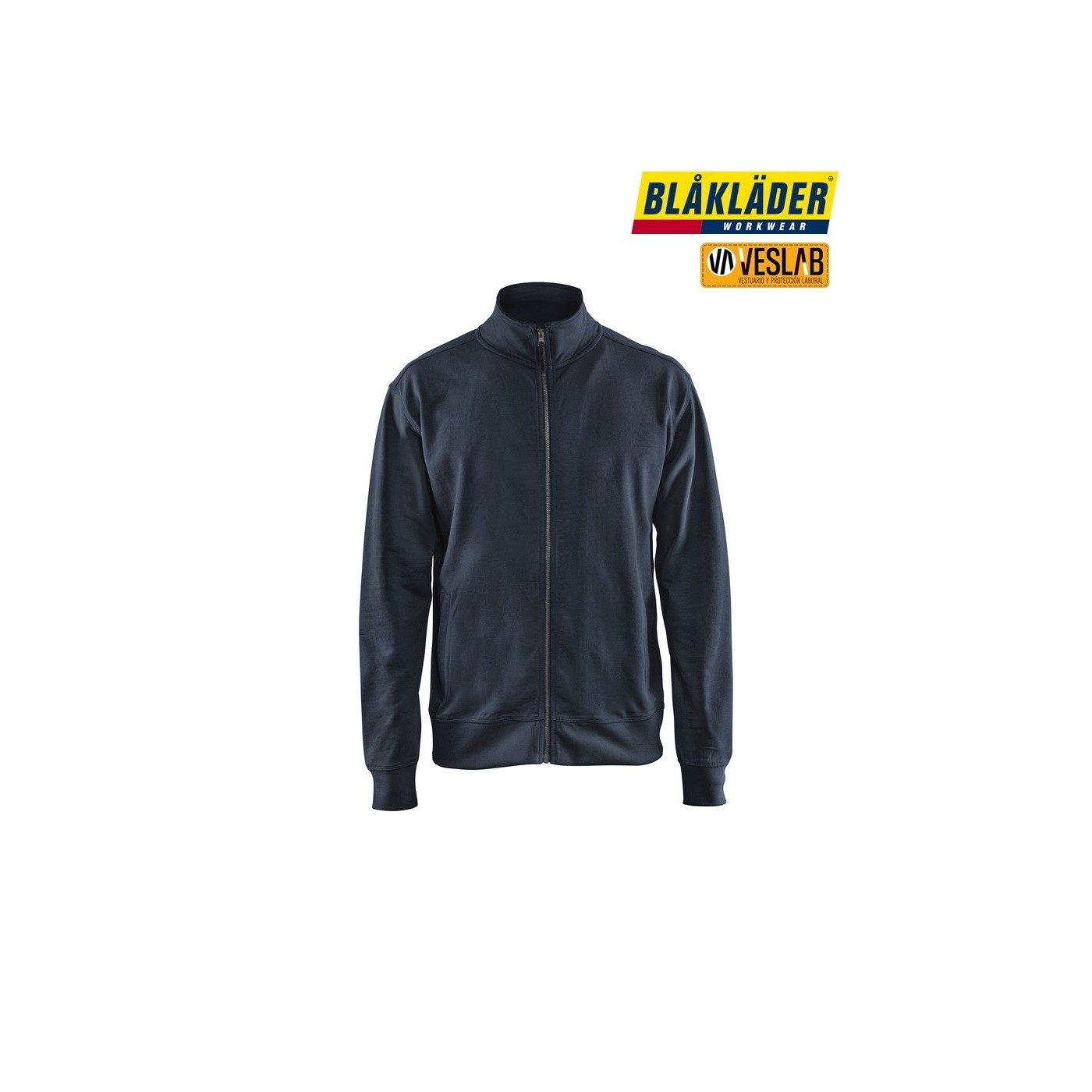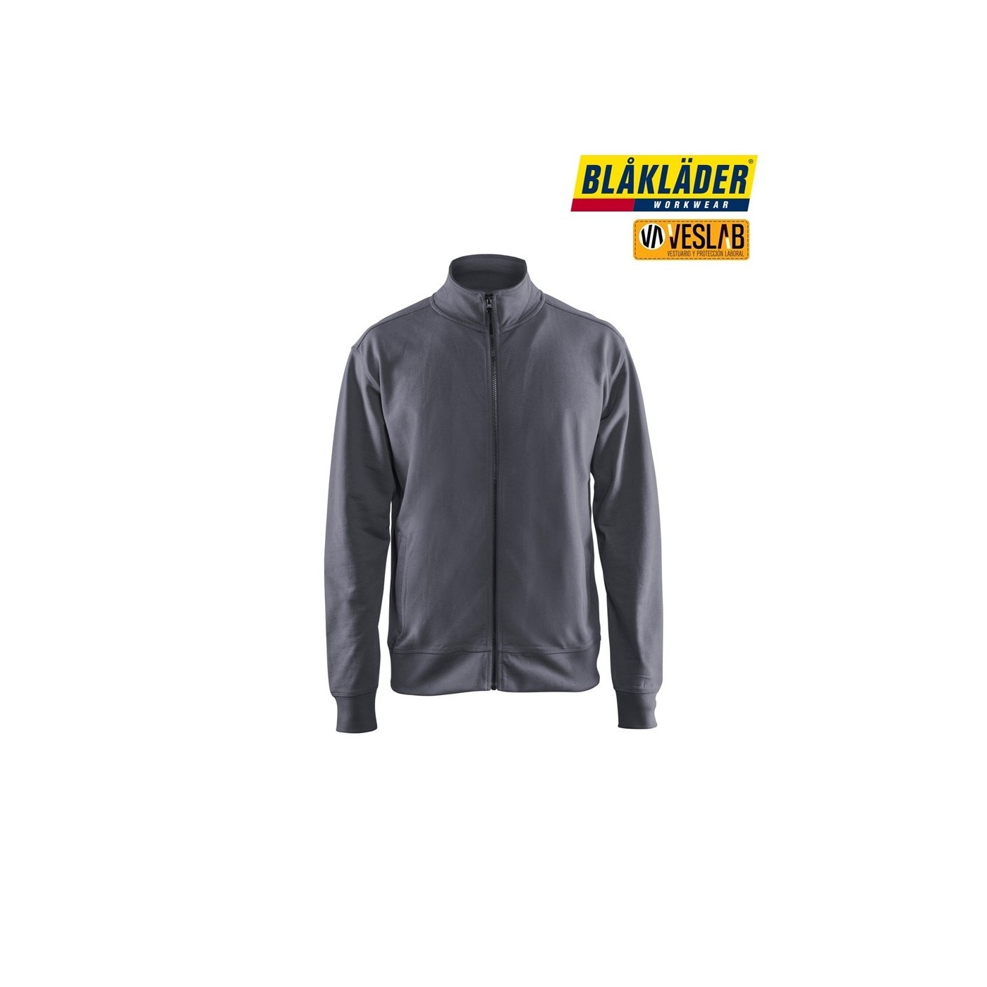 Very soft and comfortable work sweatshirt with a full zip. The sweatshirt has a high neck, a one-way plastic zipper, and ribbed waist and cuffs. It is a classic model with a normal fit.