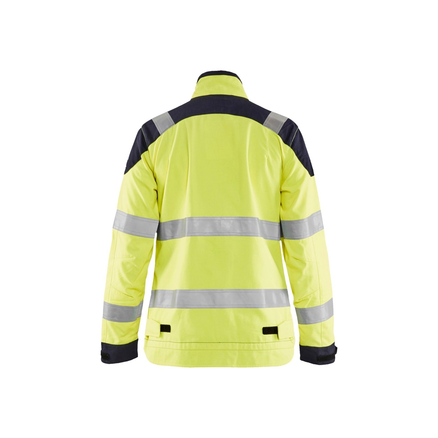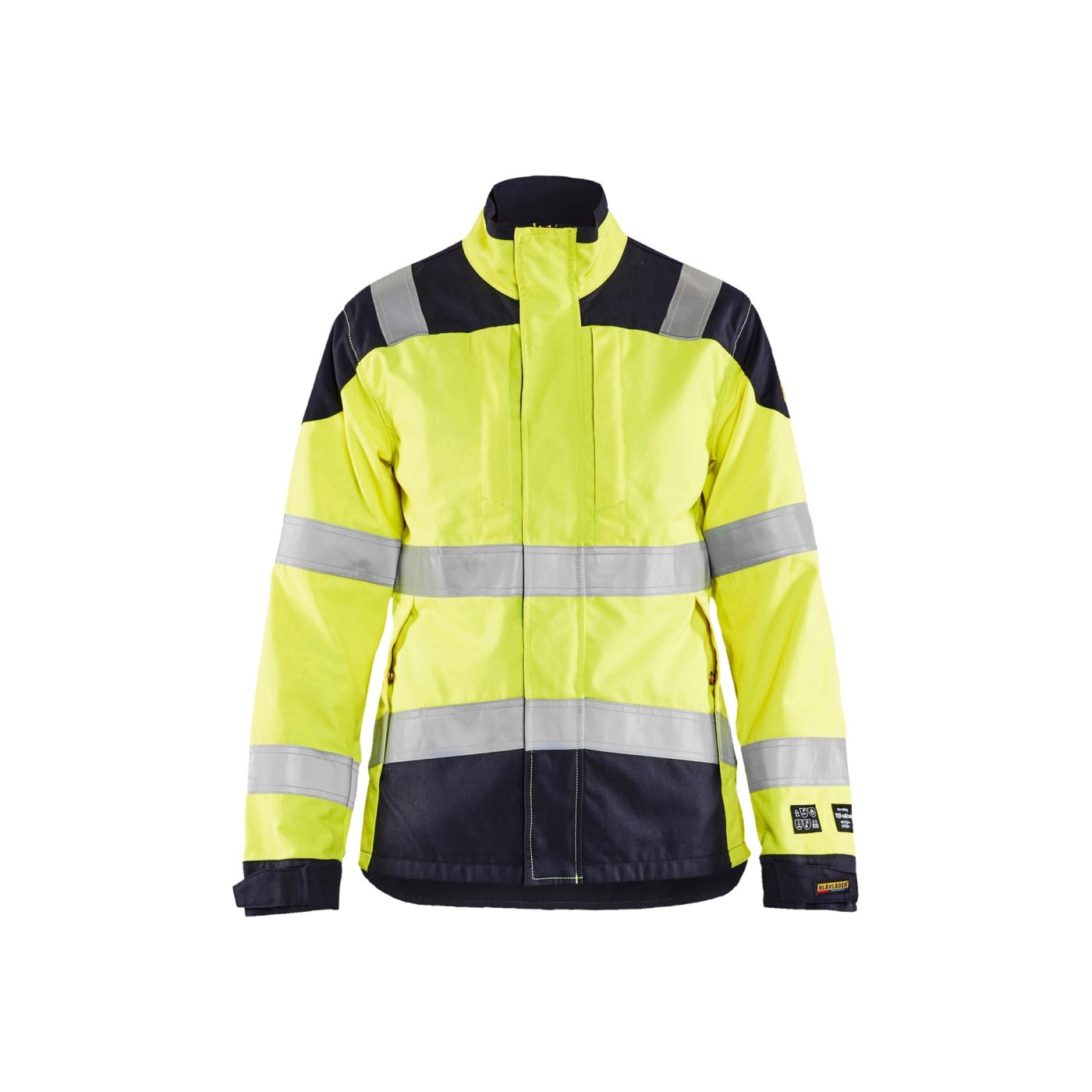 Flame retardant jacket for women in durable ripstop material, offers good tear resistance to withstand the harsh demands of work. The jacket features practical details such as double breasted pockets with a covered zip, a long back and a bottom hem that can be adjusted with Velcro for a comfortable fit. It has reflective flame retardant seams; Equipped with velcro closures on the sleeves and high neck to offer good protection. Certified according to EN ISO 20471, Class 2: EN 13034 PB [6]: EN 1149-5: EN ISO 11611, Class 1 A1, A2: EN ISO 11612 A1, A2, B1, C1, E1, F1 and IEC 61482- 2, Class 1. ATPV: 11.9 cal/cm², HAF: 79.3%, LOI: 29.6%.