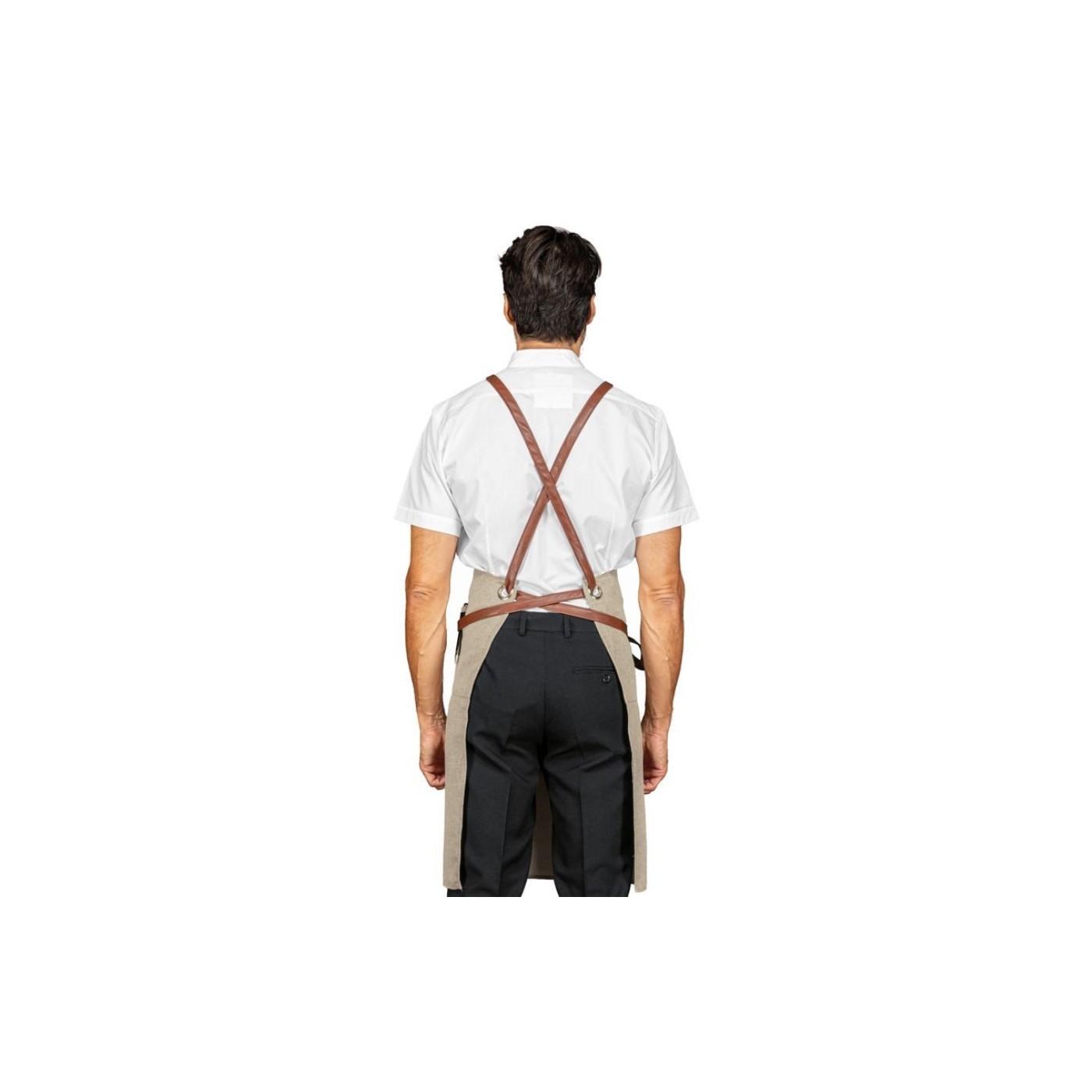 Adjustable by crossed at the back and with several practical pockets.