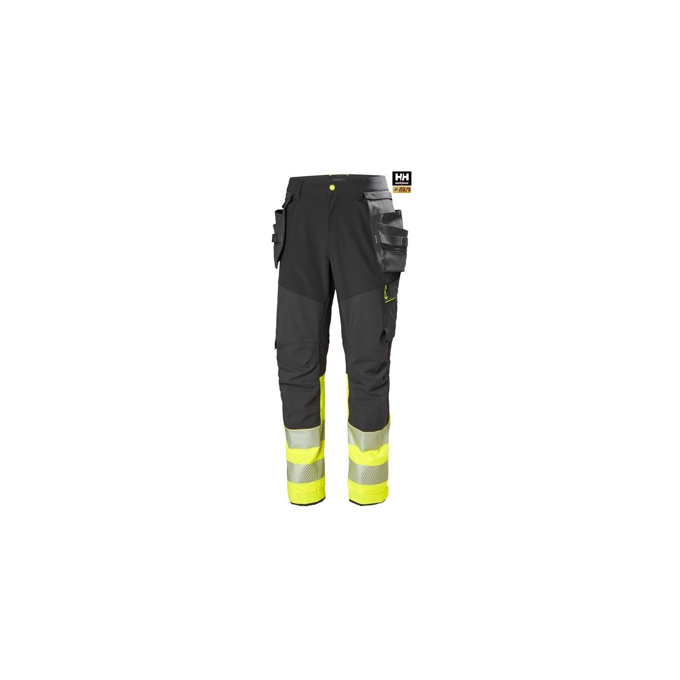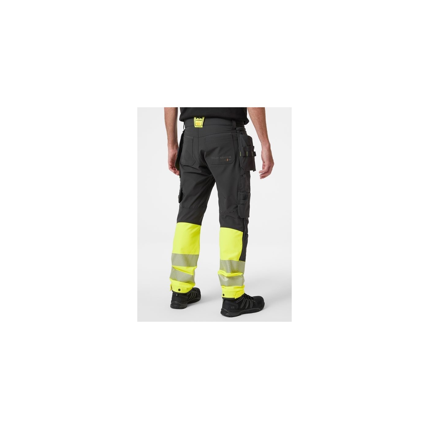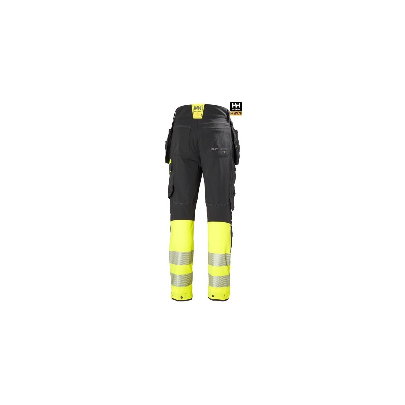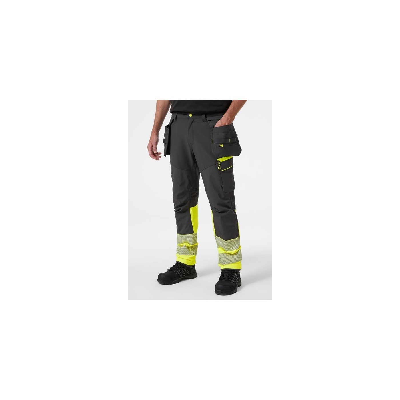 Helly Hansen workwear high-visibility trousers with removable hanging pockets in 4-way stretch fabric and maximum lightness and breathability. 3M reflective stripes