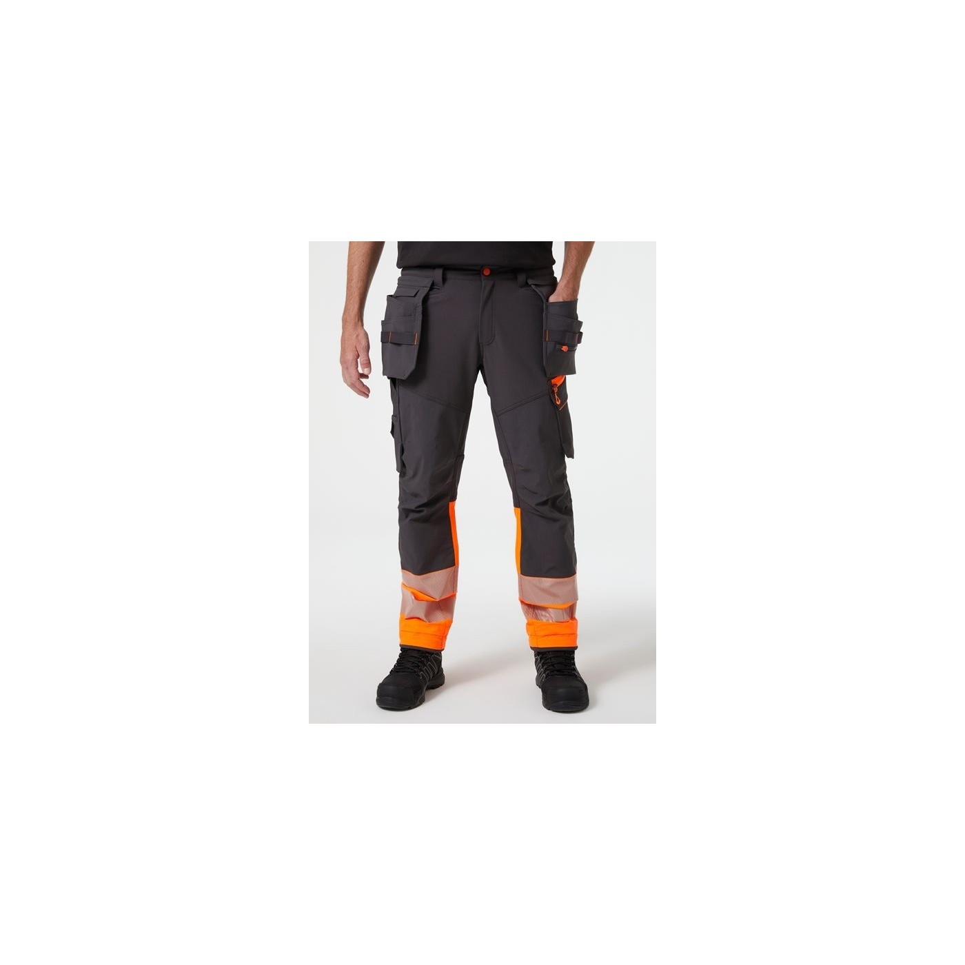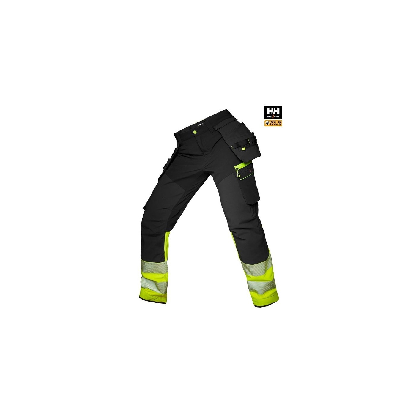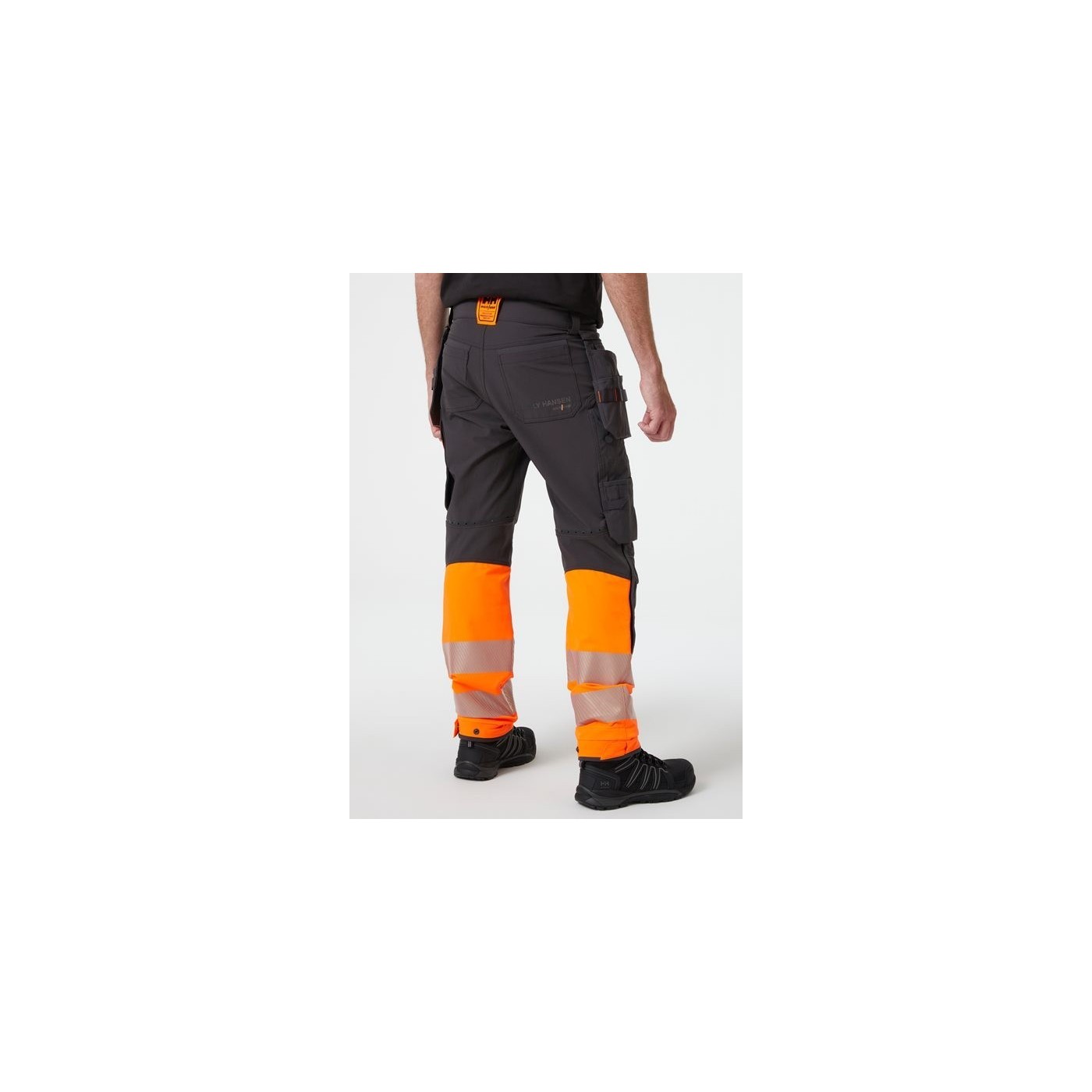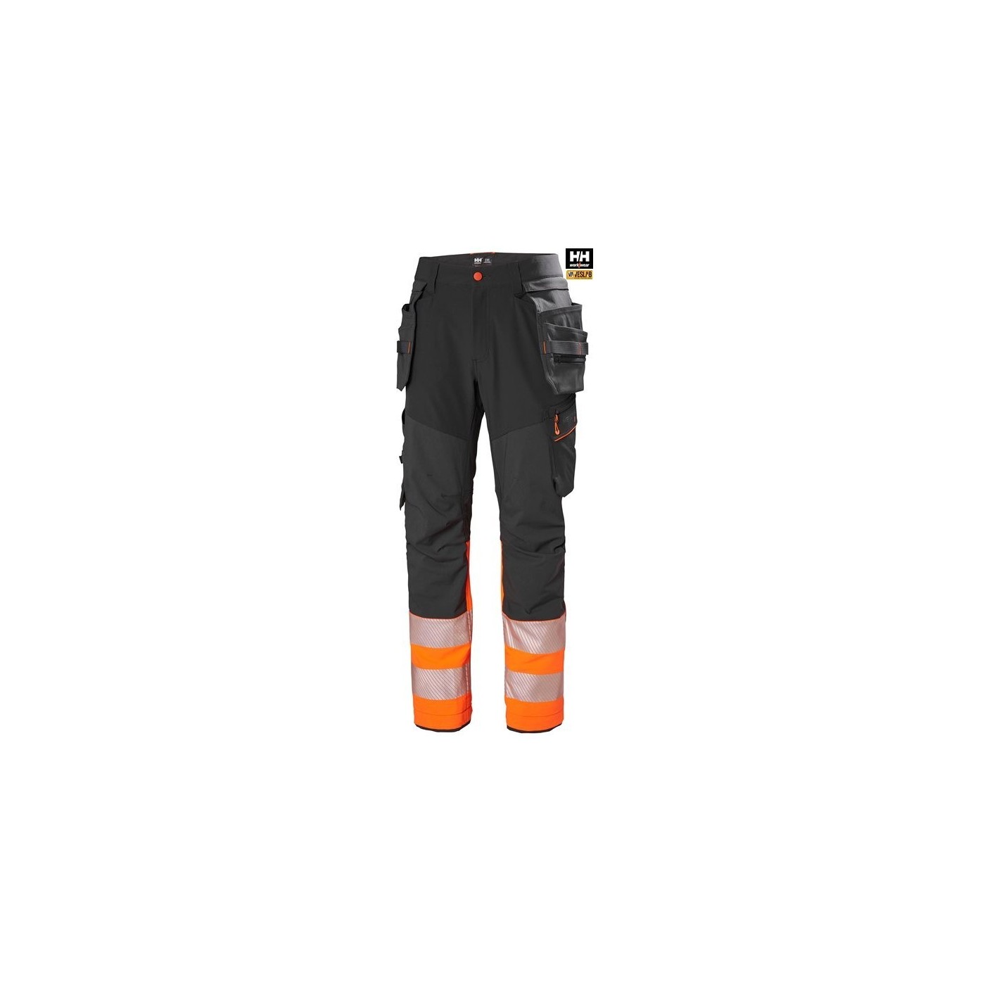 Helly Hansen workwear high-visibility trousers with removable hanging pockets in 4-way stretch fabric and maximum lightness and breathability. 3M reflective stripes
