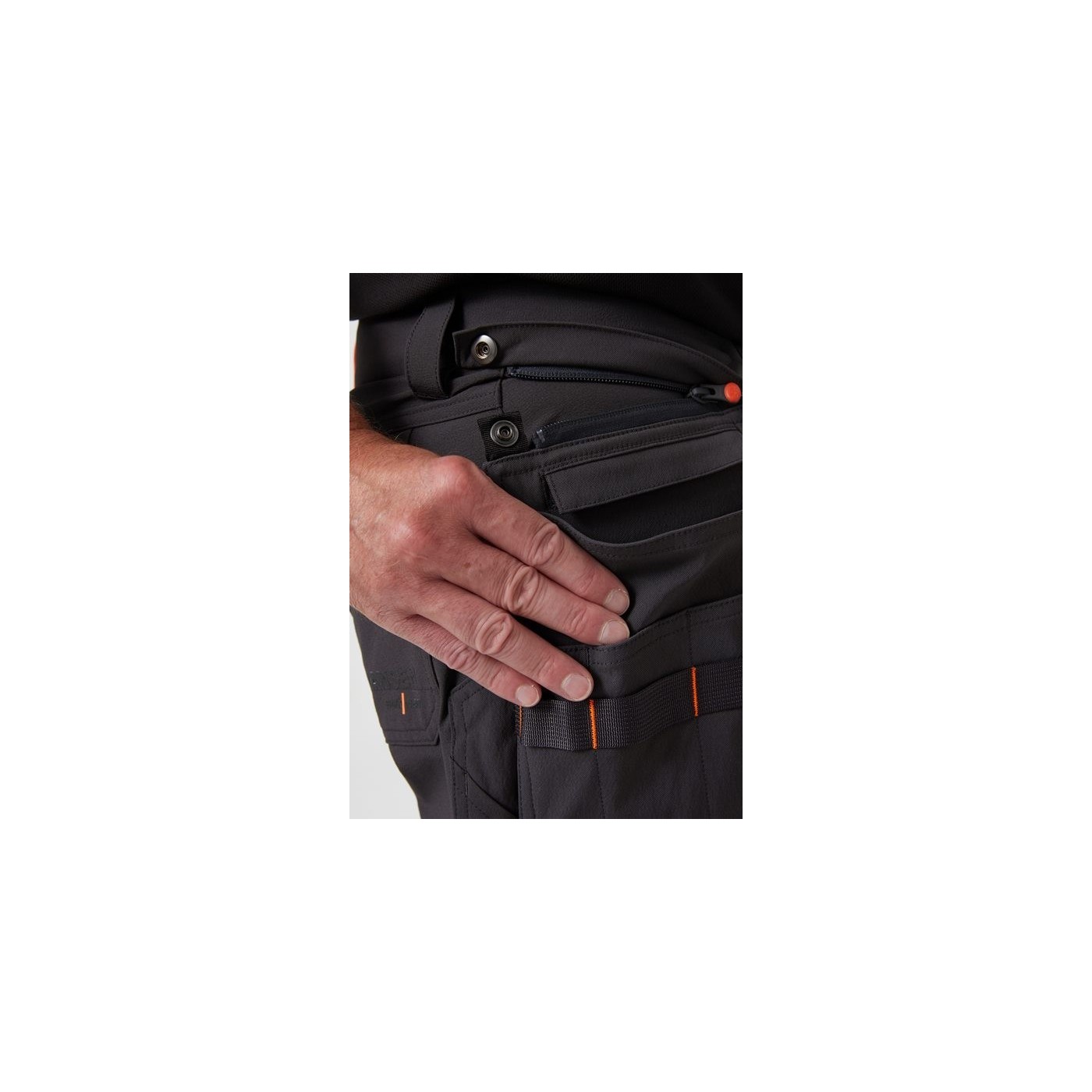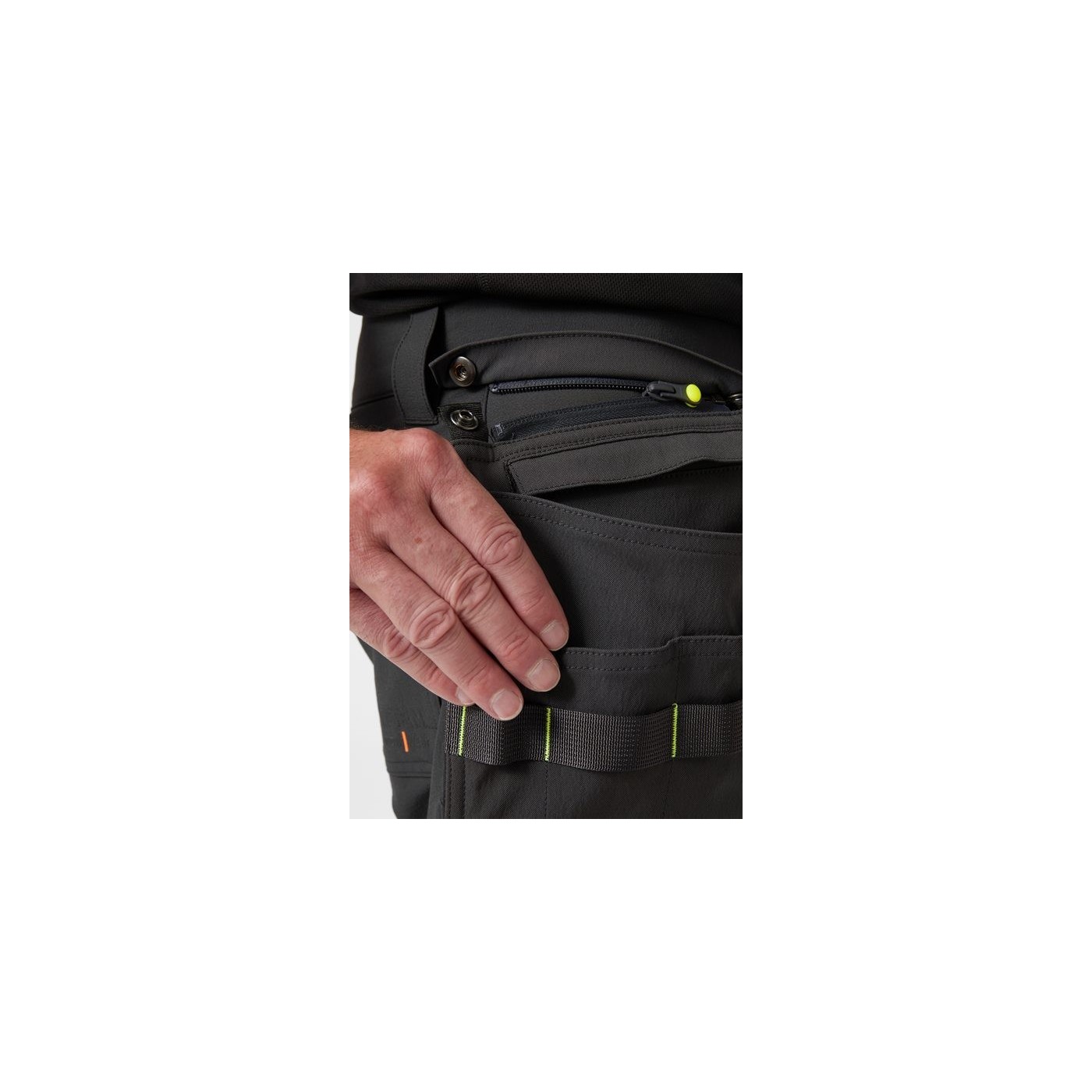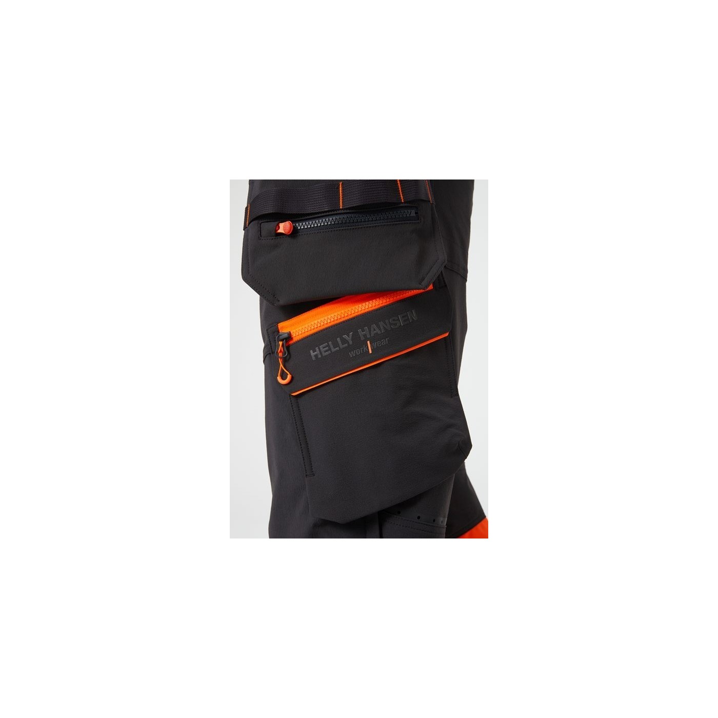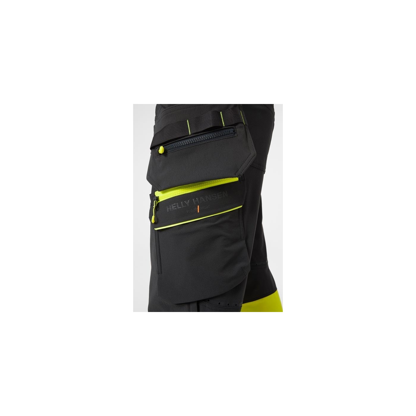 Helly Hansen workwear high-visibility trousers with removable hanging pockets in 4-way stretch fabric and maximum lightness and breathability. 3M reflective stripes
