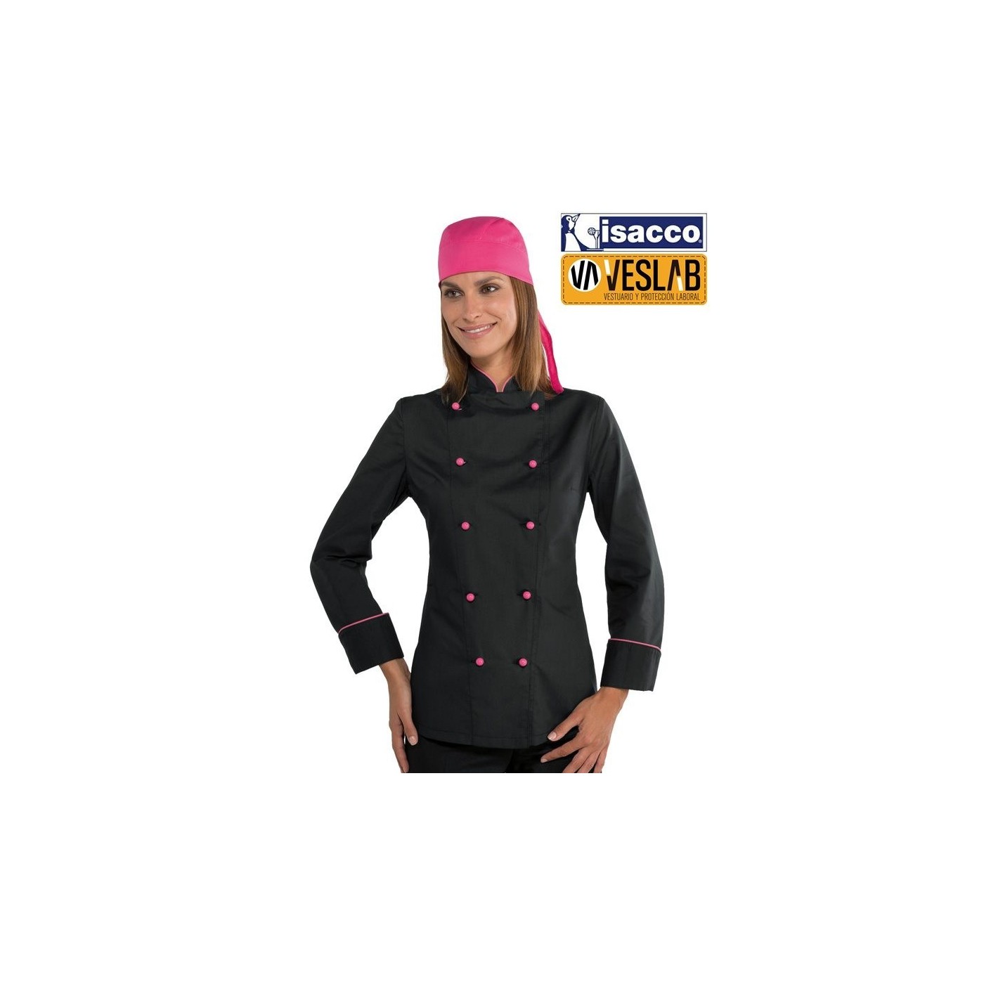 Jaqueta de cuinera Lady Extra Light en colors contrast Rosa/Fucsia o bé Negre/Fucsia.