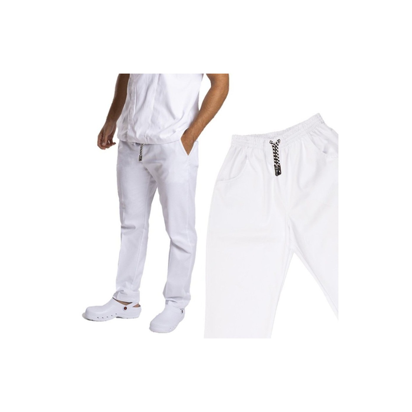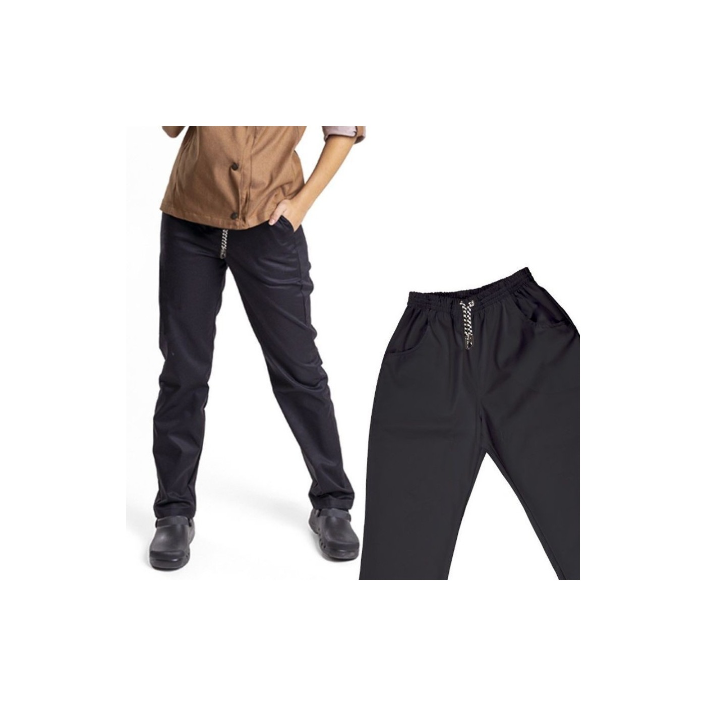 It is a high quality unisex pants for hospitality and kitchen. Very comfortable due to its extraordinary elasticity and lightness that allows total freedom of movement. 100% extra soft primesoft microfiber with good drape.