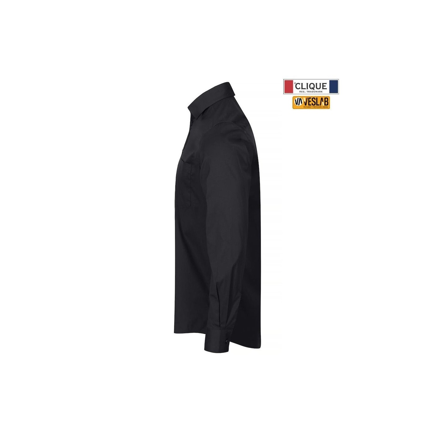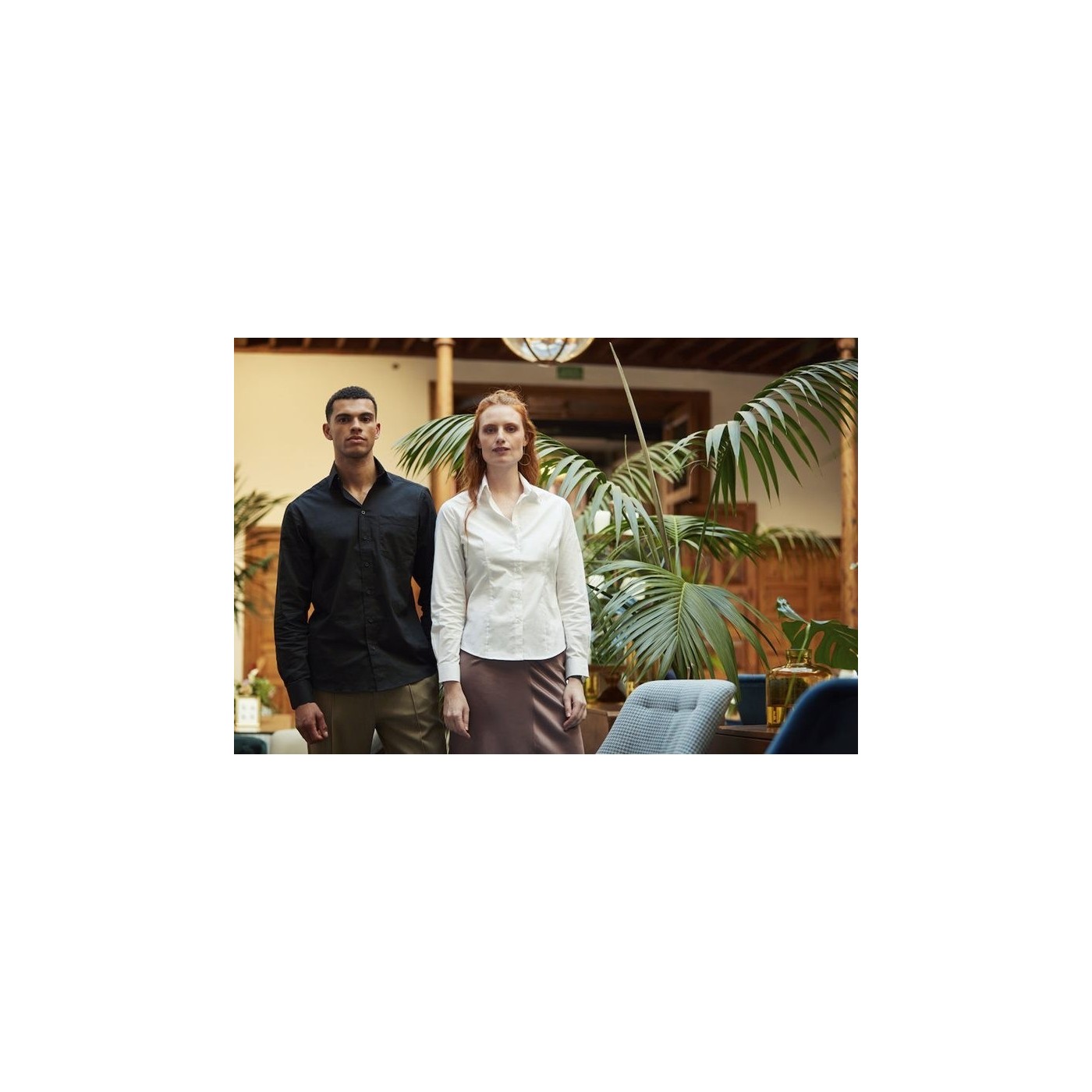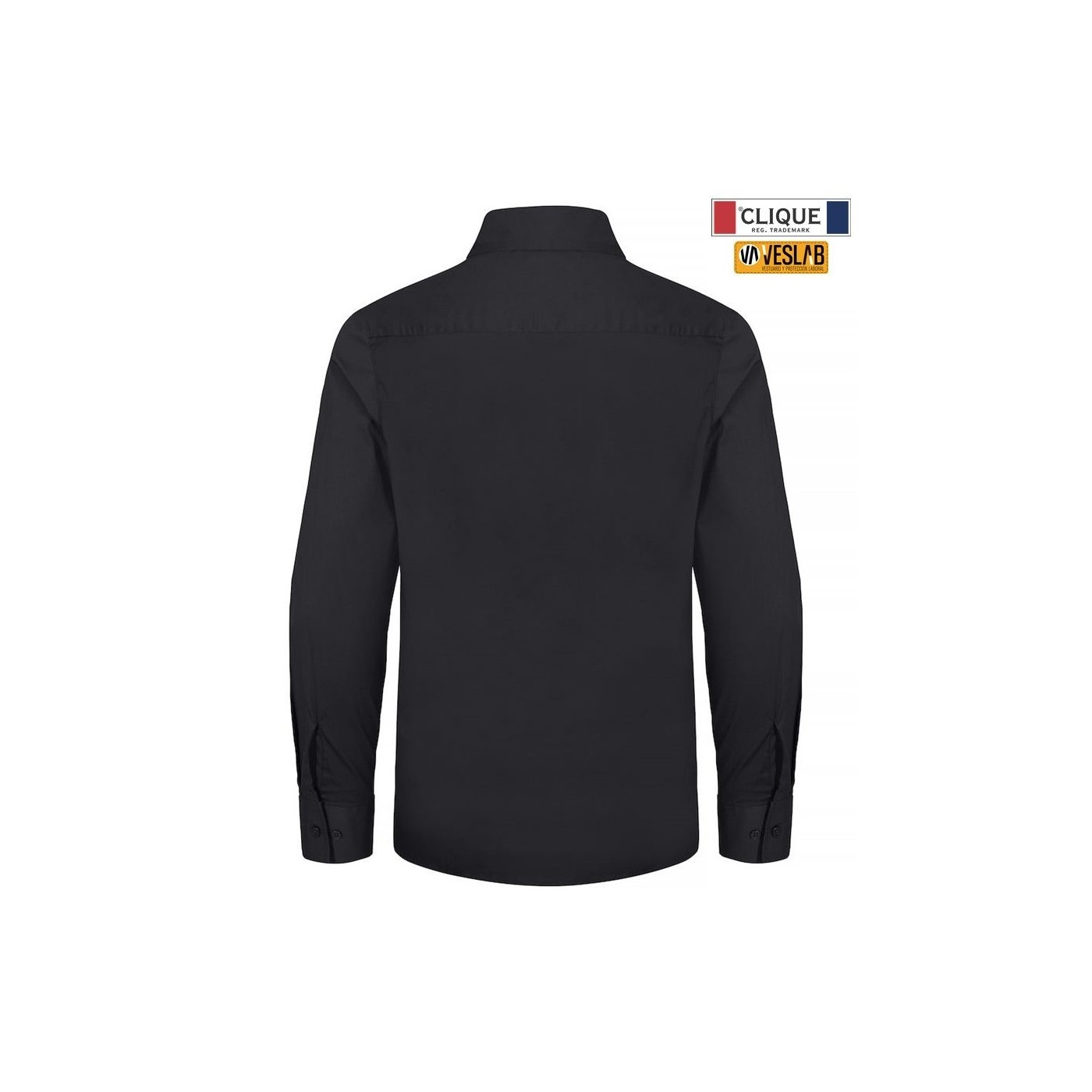 Long-sleeved stretch shirt with buttons. Adjustment button on the sleeve. The men's version comes with a chest pocket. Yoke on the back.