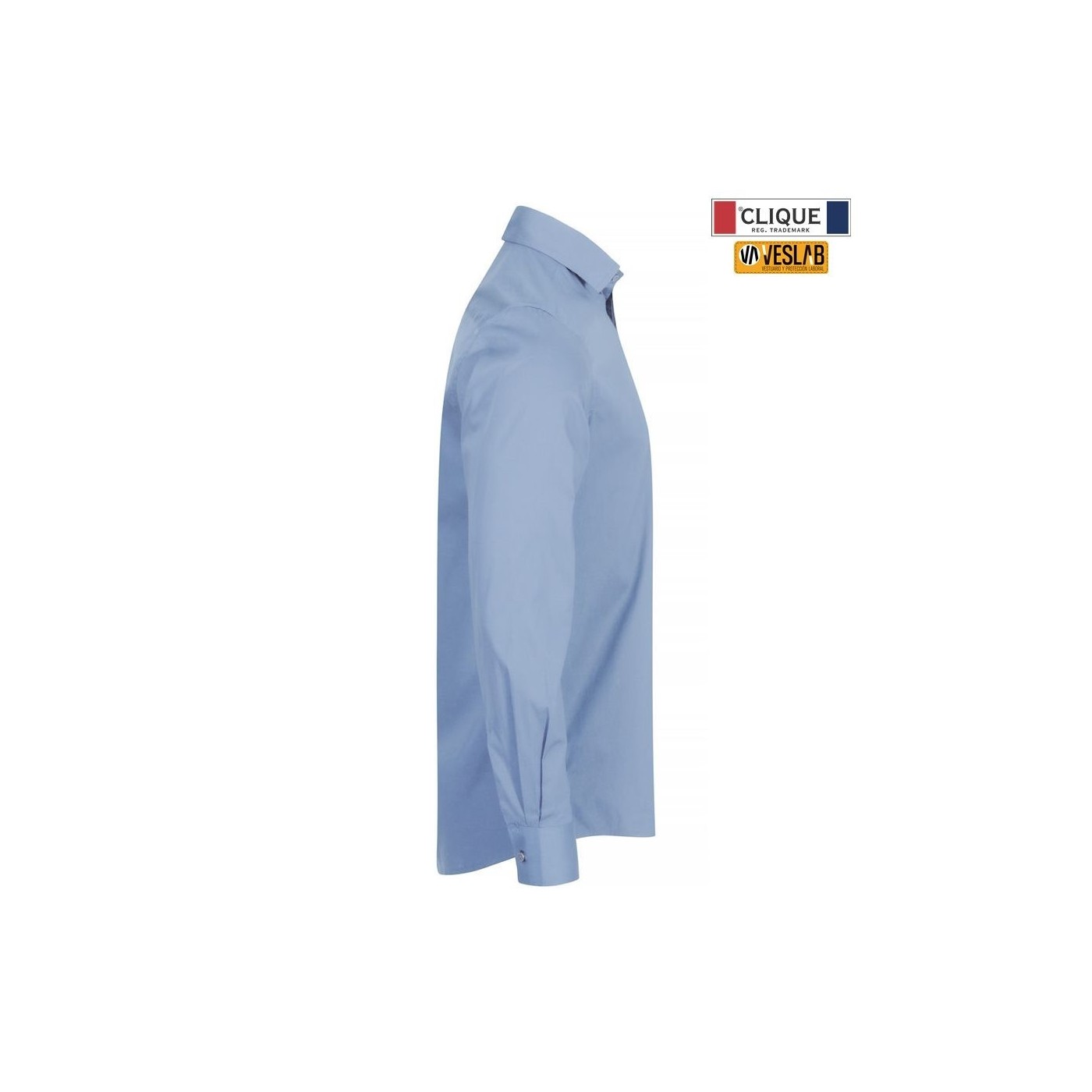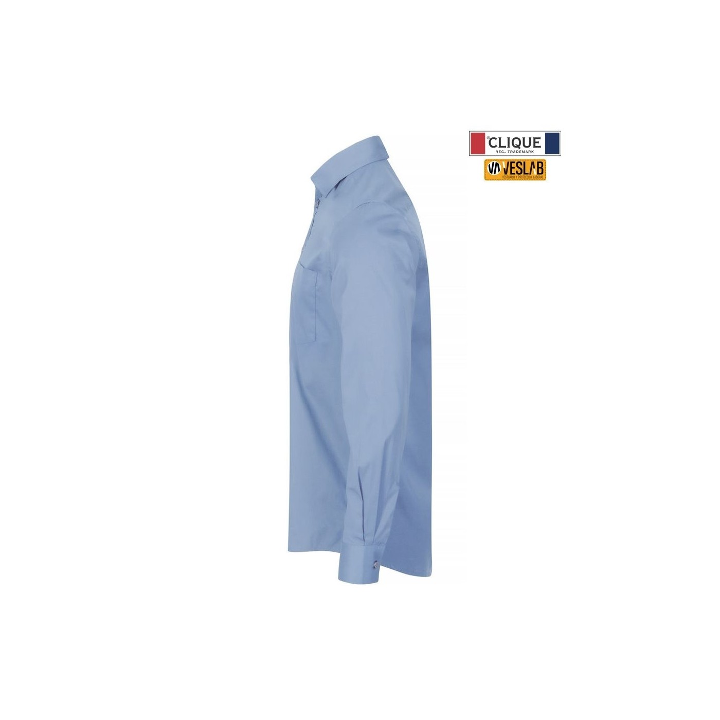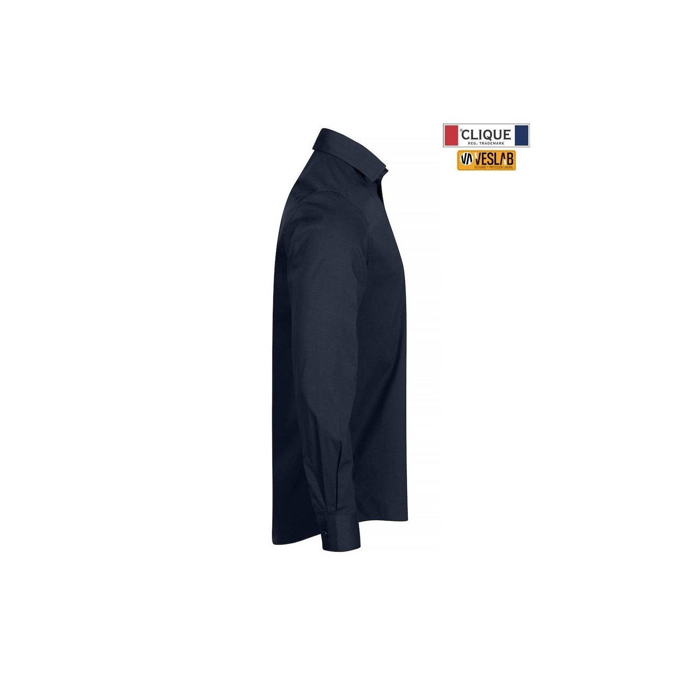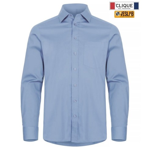 Long-sleeved stretch shirt with buttons. Adjustment button on the sleeve. The men's version comes with a chest pocket. Yoke on the back.