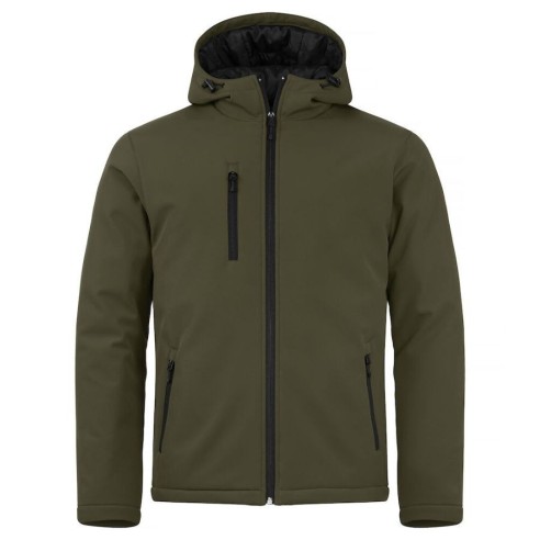 The padded softshell jacket CLIQUE combines water-resistant material, functional hood, and SBS zippered pockets, providing comfort, warmth, and style in any environment.