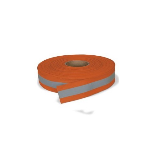 Roll of textile-based retroreflective tape, suitable for sewing to clothing. Composed of a narrow central band, retroreflective silver gray, on a textile base in different colors. Microsphere retroreflection system. Sale by full rolls. Roll of 100 m. Width 5 cm.