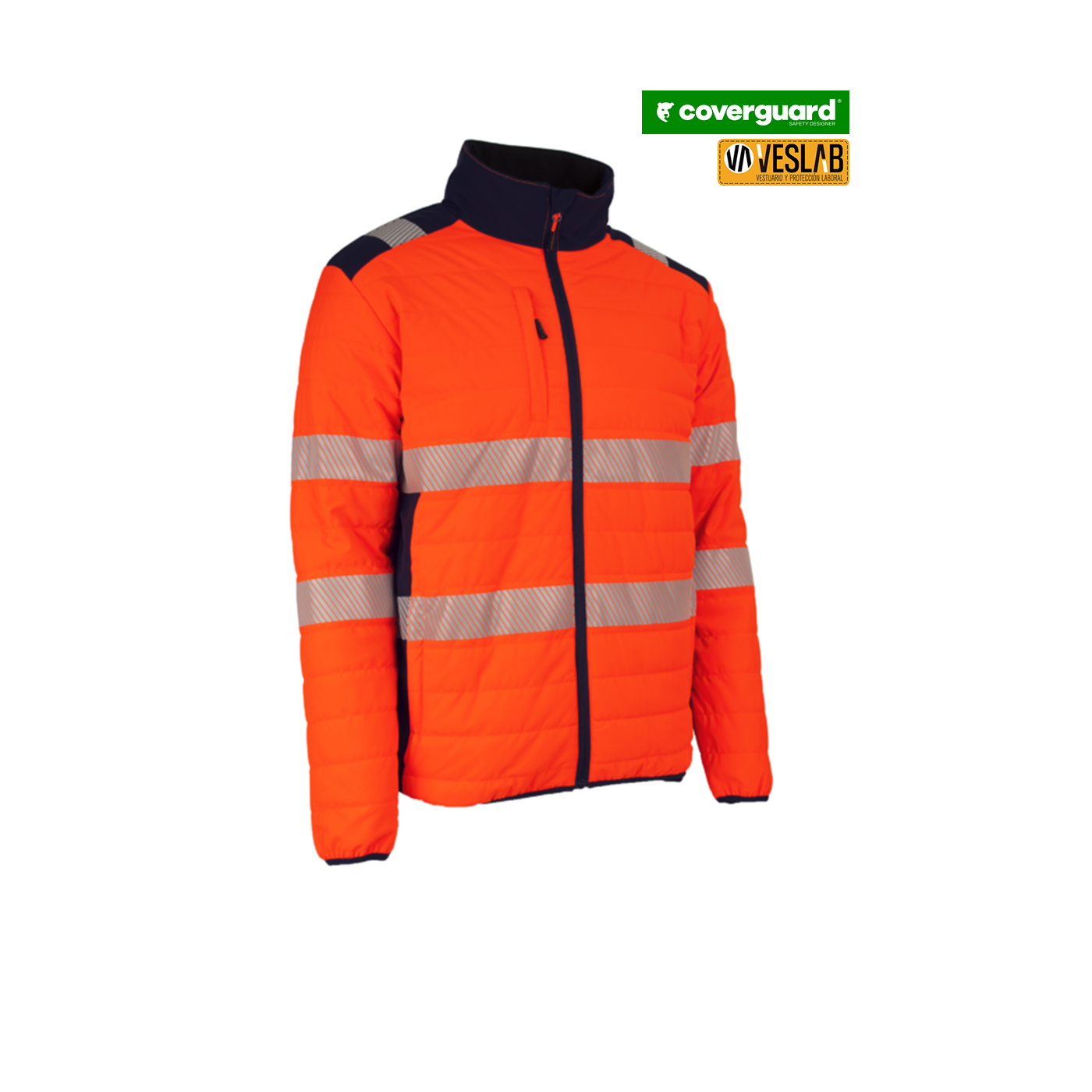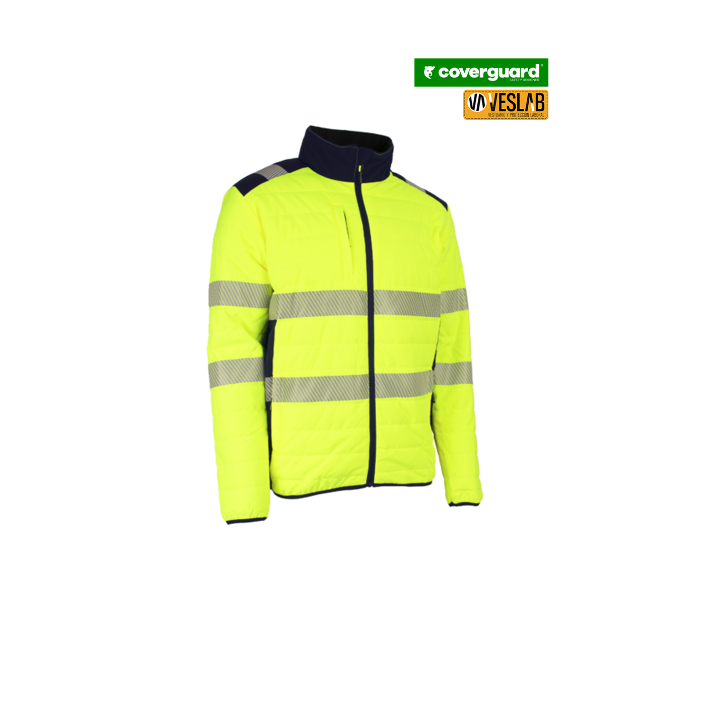It is a lightweight, high-visibility thermal jacket with a stand-up collar made of fleece. It has a central YKK + zipper with a chin protector. Adjusted by elastic waistband on the bias and has several pockets: 1 chest pocket under the trim / 2 lower pockets under the trim / 2 inside pockets closed with velcro Cuffs Cuffs with elastic bias.