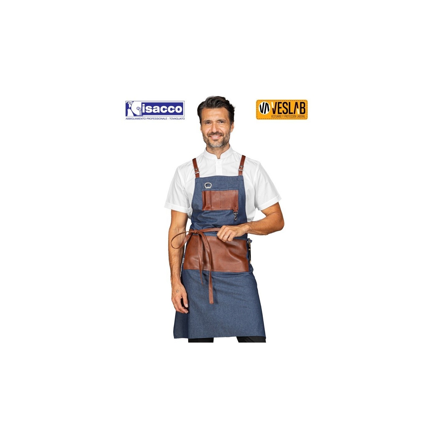 The Bristol Unisex Jeans + Leather Bib Apron is the ideal choice for those looking for a high quality and exceptional style apron. This apron is made from a combination of durable denim fabric and genuine leather, giving it exceptional durability and a modern look. The main material used is 100% cotton of 220 grams per square meter, which guarantees incomparable comfort during long hours of work in your food truck.