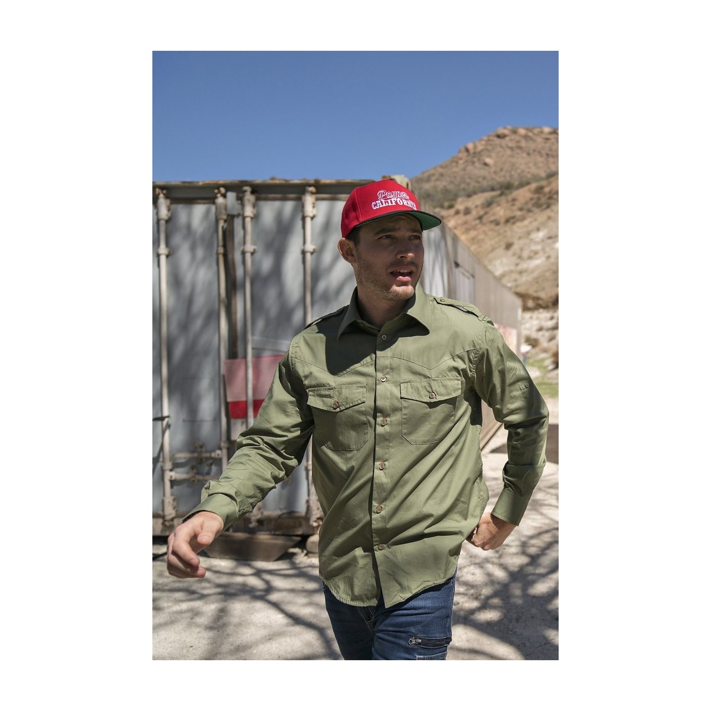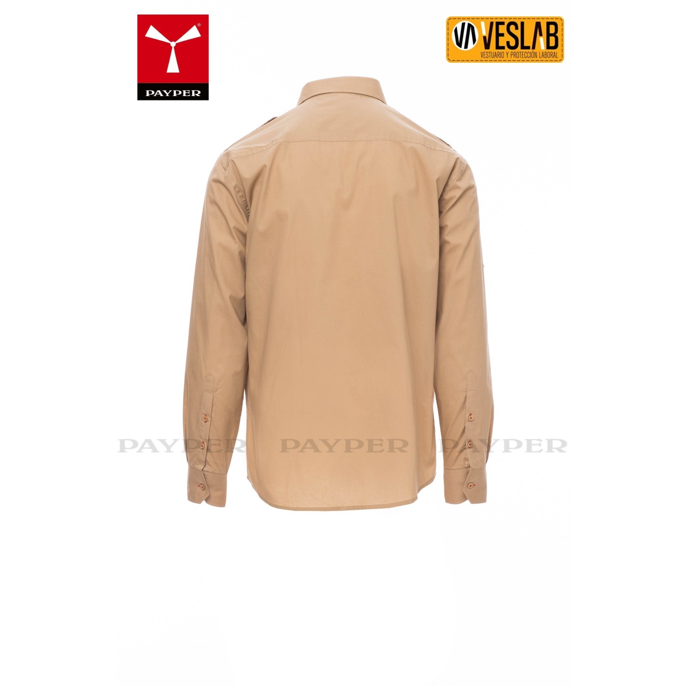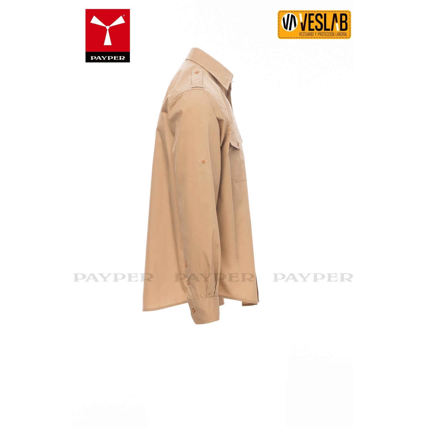 This shirt also offers practicality with two chest-high pockets, each with a flap and a convenient pen holder. In addition, it has a ribbon with a button on the arm so you can roll up the sleeves according to your preferences.
