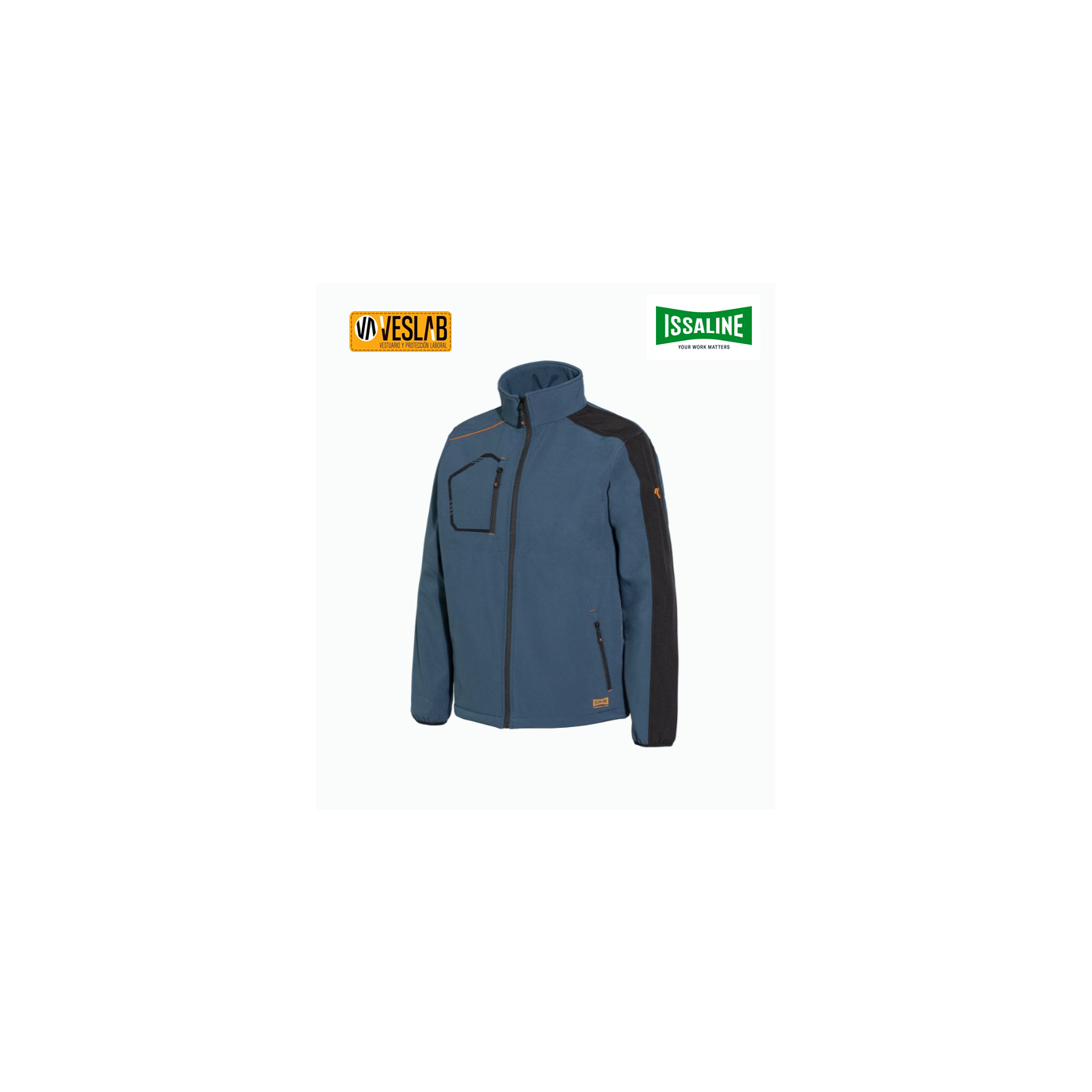The waterproof and breathable softshell jacket is made entirely from recycled material, demonstrating a commitment to sustainability. It has three front pockets and two side pockets, offering ample storage space. Adjustable drawstring waist allows for a better custom fit. The jacket is available in two color options: blue with black inserts and anthracite gray with black inserts. Its composition consists of 100% recycled 150D polyester bonded with 100% recycled fleece, ensuring long-lasting quality. The recycled TPU membrane provides water resistance of 3,000 mm and high breathability of 1,000 g/m2/24 h.