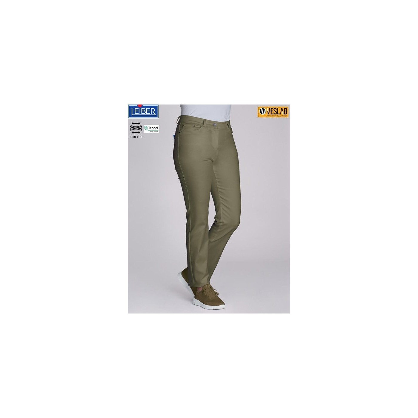 Classic 5 Pocket Pants. Length 80 cm. Women. Olive. 57/39/4% Alg/Poly/Lycra 290 gr/qm. Classic. Very Elastic and Soft Touch Fabric. Belt Loops