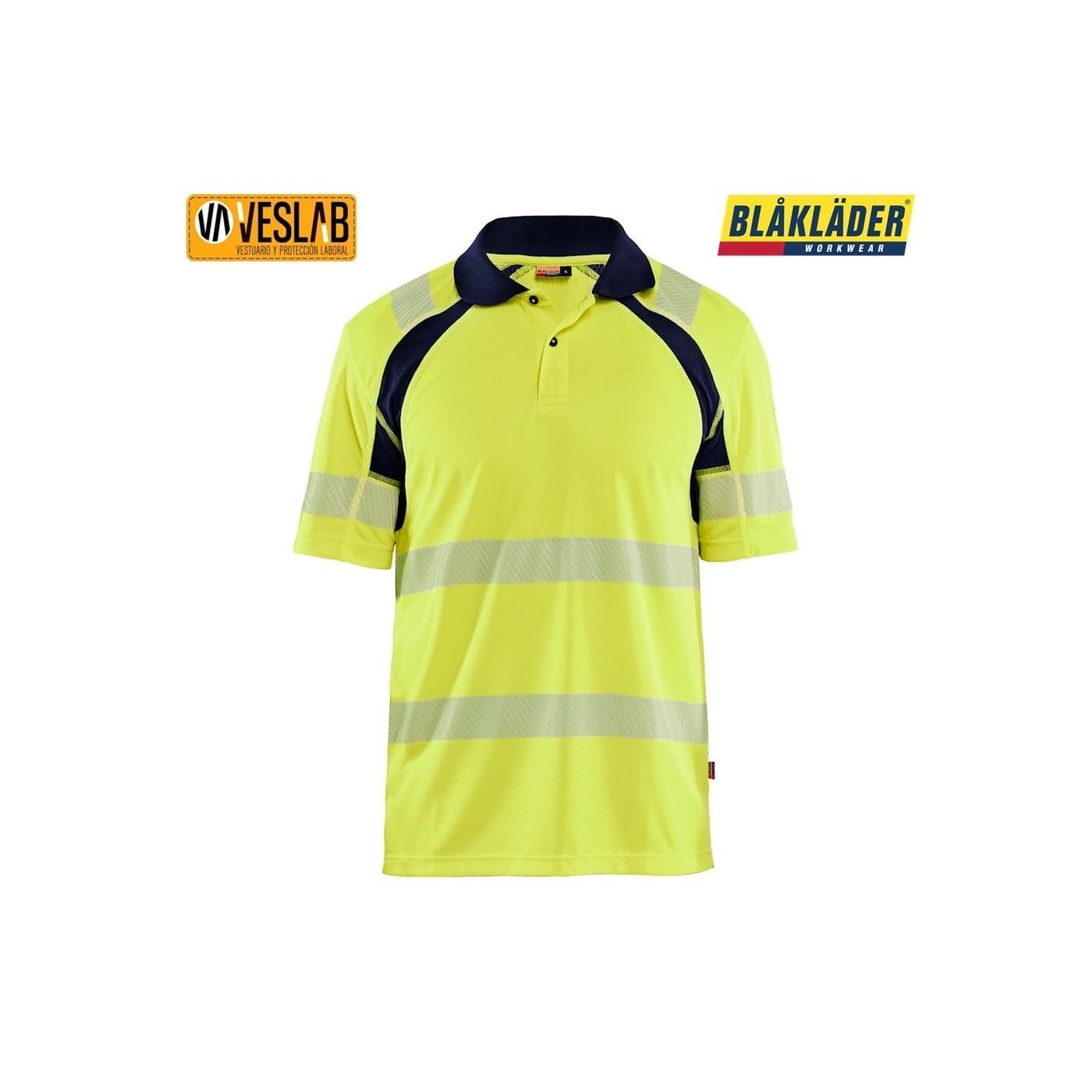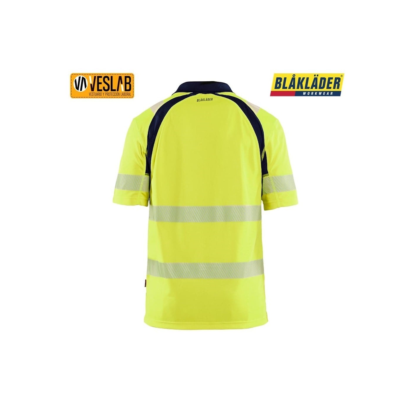 The Blåkläder functional high visibility polo is an ideal garment for those who work outdoors and need a polo that responds to increases in temperature. Made from polyester polar microfiber, it offers UV protection, anti-odor treatment and optimal moisture dispersion. It has segmented reflective and strategically placed mesh panels. It meets EN ISO 20471, Class 2 certification standards and has 50mm wide cut reflective elements.