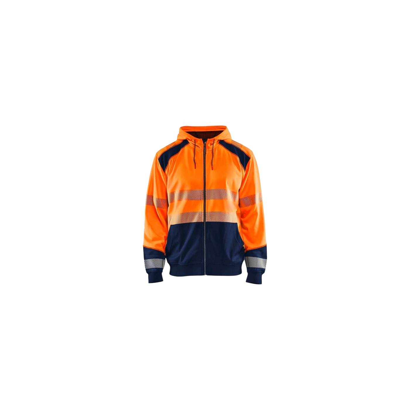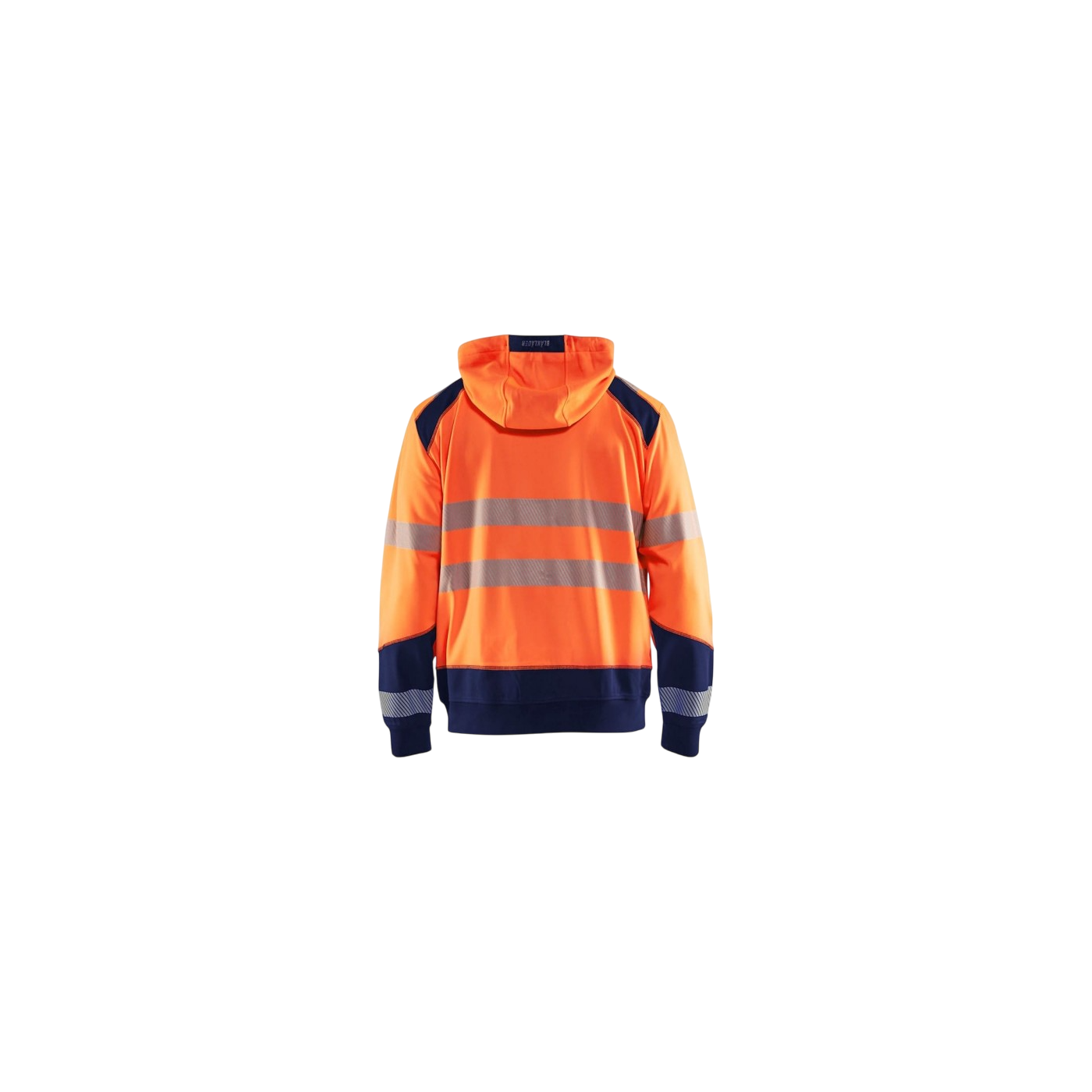The Blåkläder kangaroo pocket sweatshirt is a versatile and functional garment. Designed with dark panels in areas exposed to dirt, it features a zip, three-piece hood and practical features such as a headphone hole and a zipped phone pocket. Made of plush polyester on the inside, it offers comfort and visibility from all directions. Complies with EN ISO 20471, Class 2 certification standards.