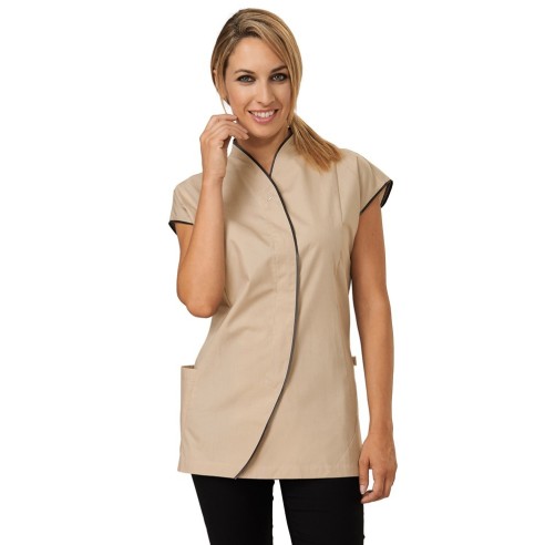 The jacket has a practical bag on the right front, ideal for storing small objects or work tools. Additionally, tagli sagomati, or shaped cuts, highlight the silhouette and provide a flattering fit. The contrast profile adds a touch of style and distinction to the garment.
