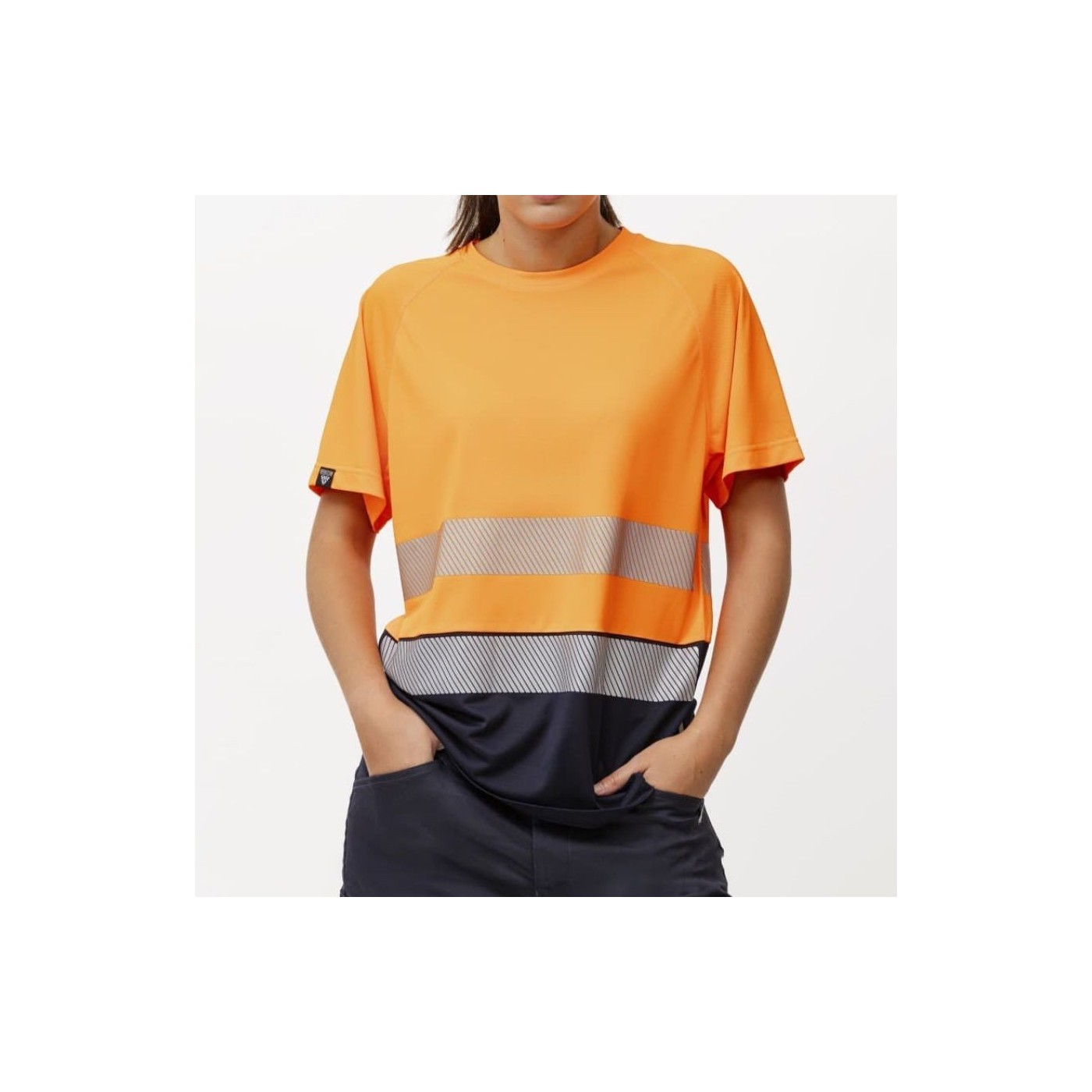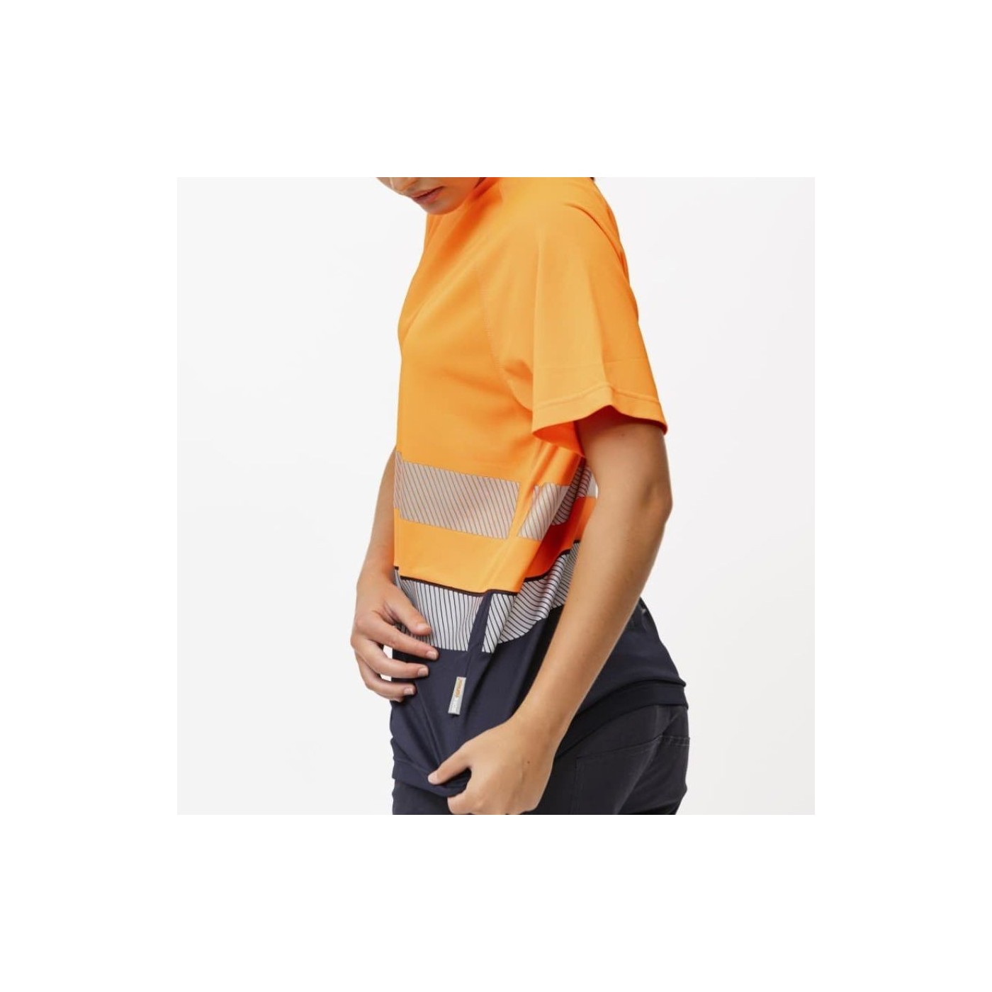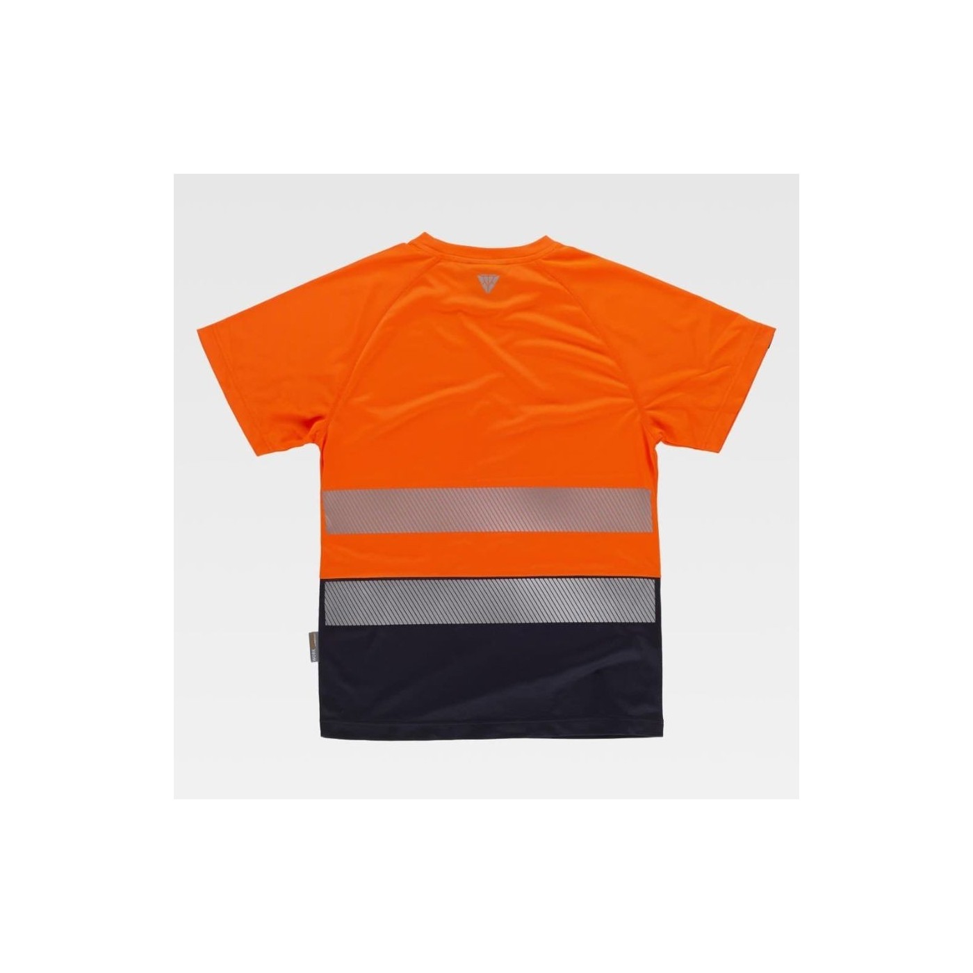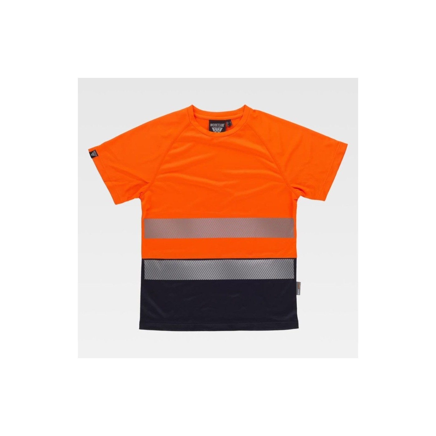 Breathable high visibility t-shirt with short sleeves in micropiqué polyester and segmented reflective tapes on chest and back. Lightweight, comfortable, with silver ion treatment against moisture, bacteria, and odors.
