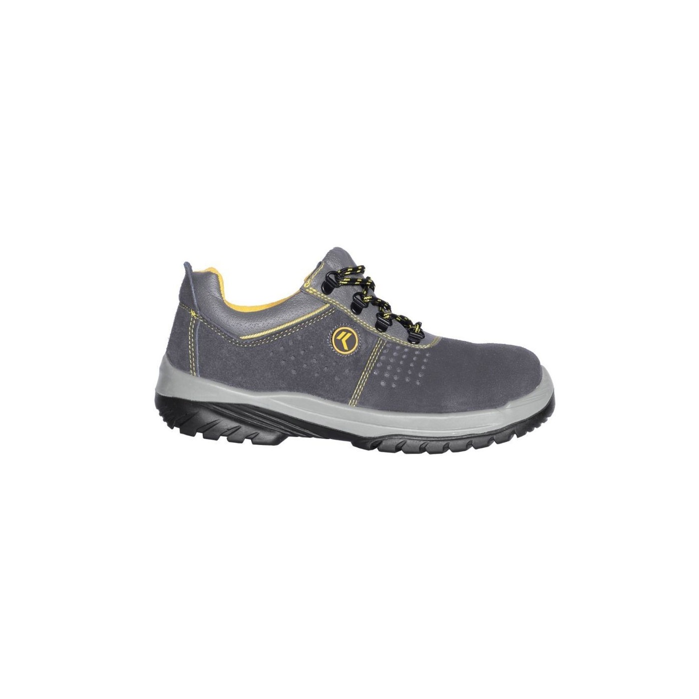Inexpensive perforated leather safety footwear with anti-slip bi-density PU sole. It has a seamless toe cap to reduce the risk of seams and thus guarantee greater safety as well as prolongation of its durability.