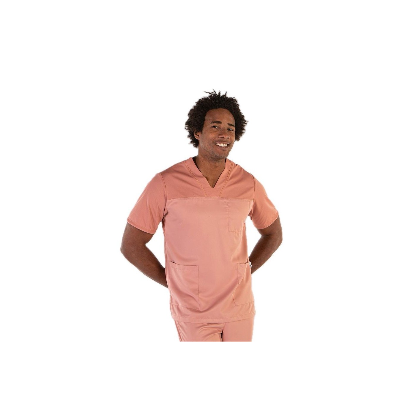 The Men's Medical Blouse Izan Peach by Gary’s combines elegance, functionality, and advanced technology for professionals in the healthcare and labor sectors. Its short-sleeve design with a V-neck and loose fit guarantees freedom of movement, while its exclusive Peach fabric repels water and fluid splashes, providing safety and comfort throughout the day.