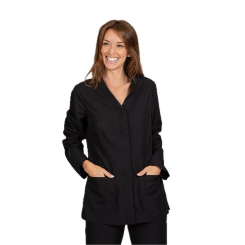 The AITANA long-sleeve medical tunic, made of antibacterial microfiber with SILVADUR™ technology, provides freshness, breathability, and a comfortable fit. Durable, washable at 90ºC, and hair-repellent, it is ideal for healthcare and professional environments.