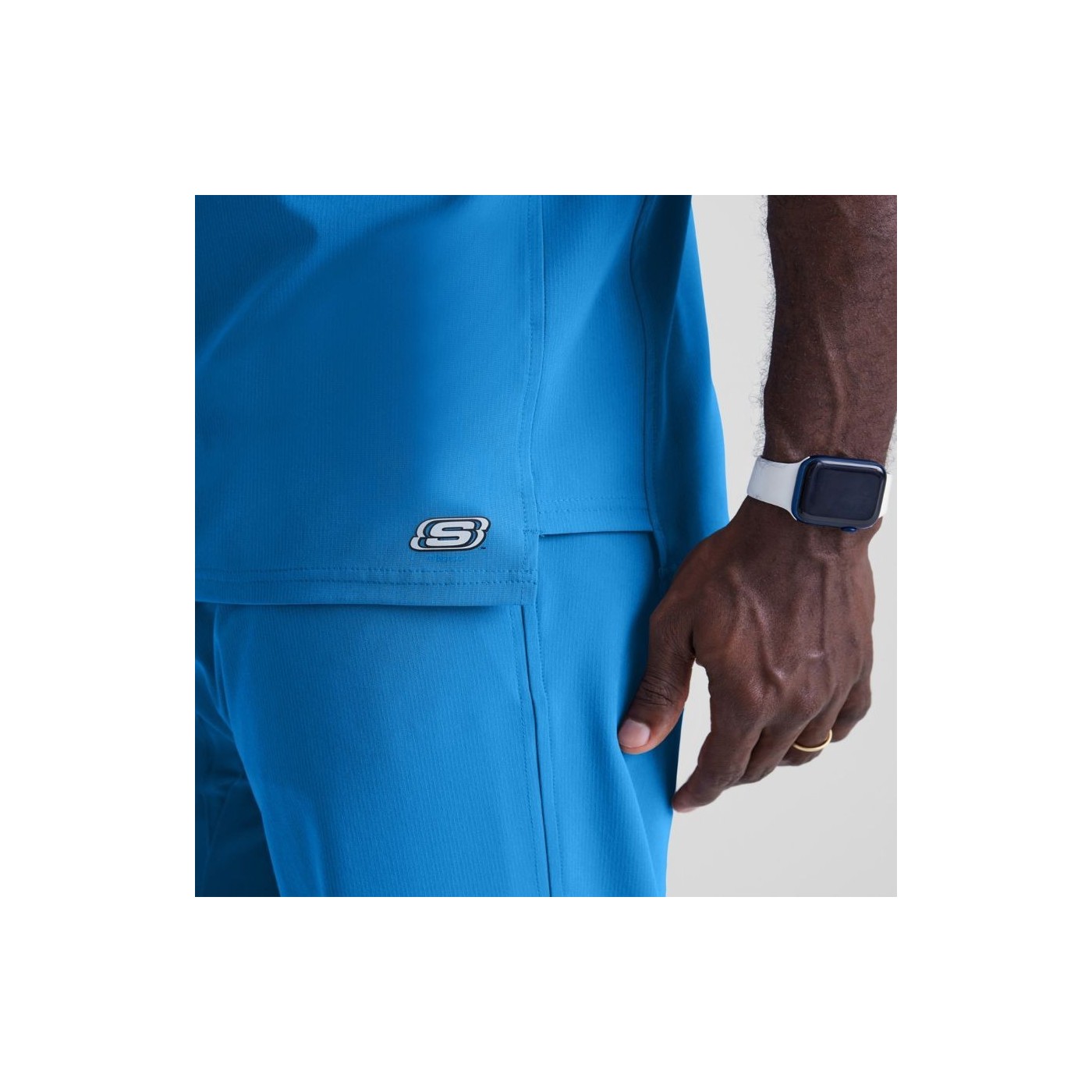 The Men’s Structure Medical Scrub Top from Skechers™ by Barco offers comfort and flexibility with its 4-way stretch fabric, wrinkle-resistant technology, and moisture-wicking properties. Featuring functional pockets and eco-friendly fabric made from recycled bottles.