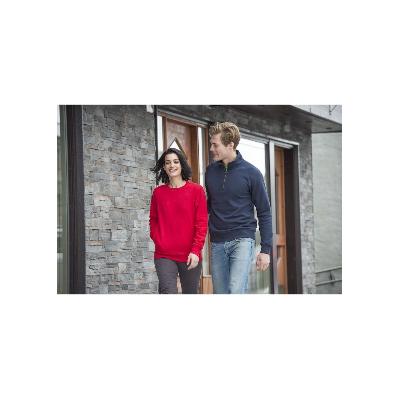 Half-zip unisex sweatshirt with matching stitching. 2x2 channel. Hidden side pocket with zipper. Adapted for headset.