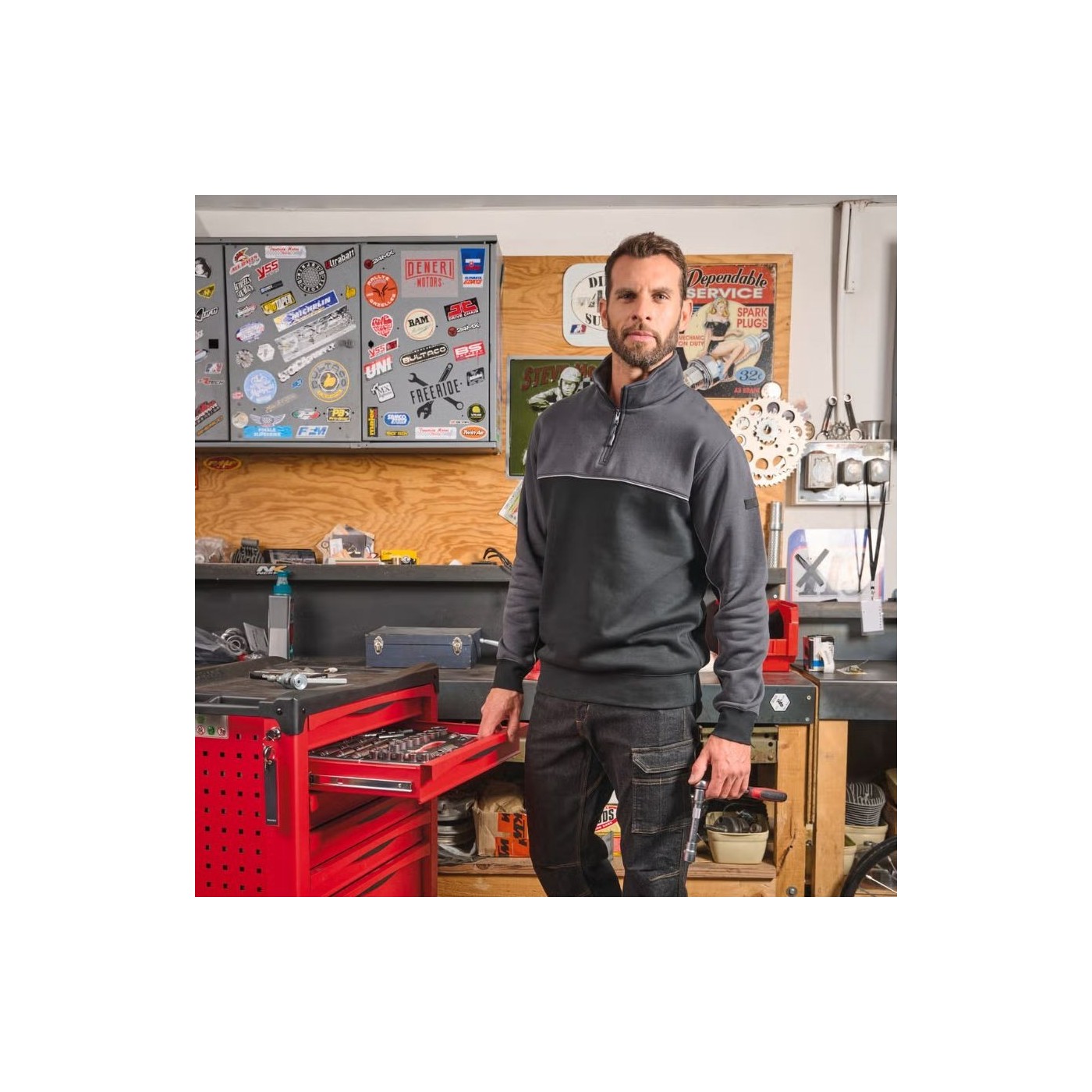 The work sweatshirt with 1/4 zip by WK delivers comfort, durability, and eco-conscious design. Perfect for professionals, it combines modern style with sustainable materials for everyday use.