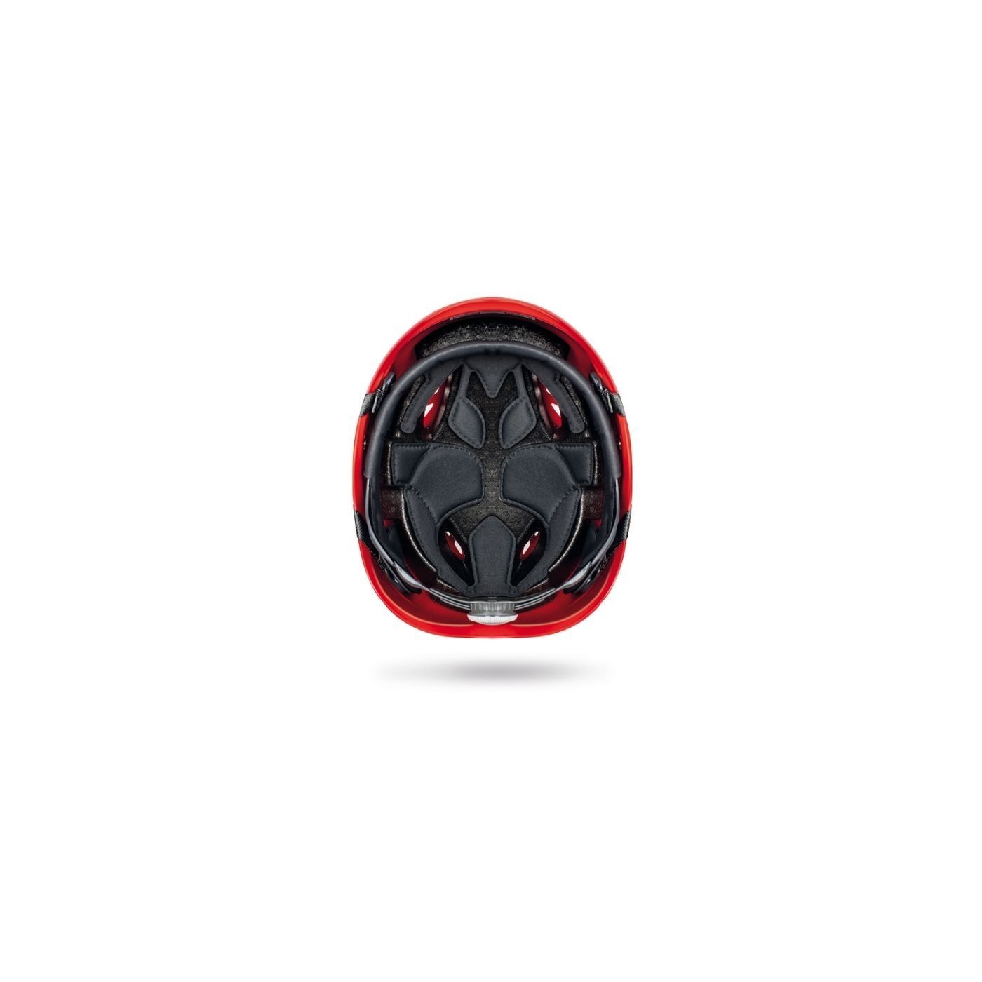 Fitted with a special loop on the chin strap which allows the helmet to be connected to the harness.