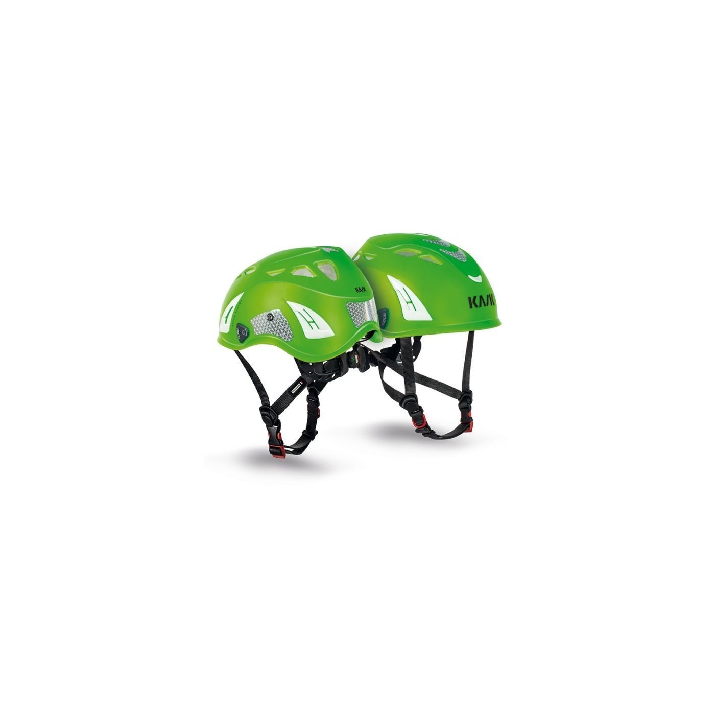 Fitted with a special loop on the chin strap which allows the helmet to be connected to the harness.
