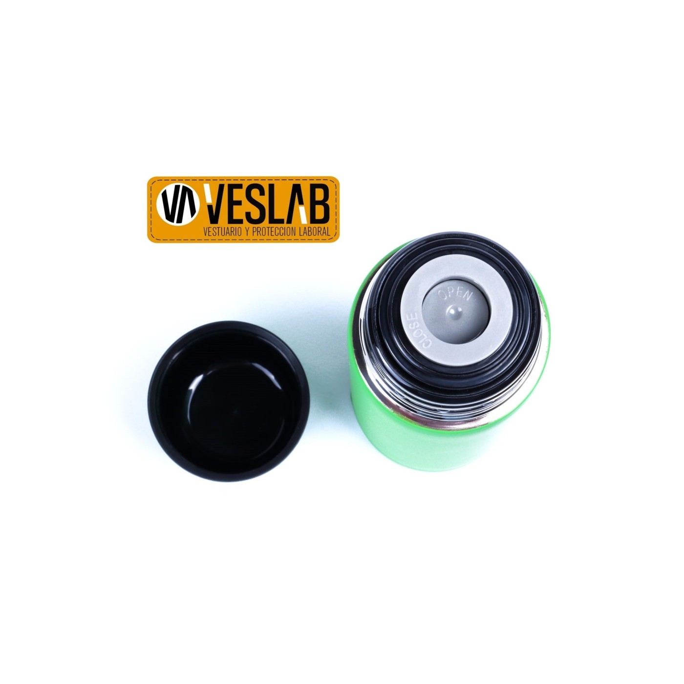 500ml capacity stainless steel thermos in a single-color design in bright colors. With safety dispenser and screw-on lid convertible into a cup. Presented in individual box.