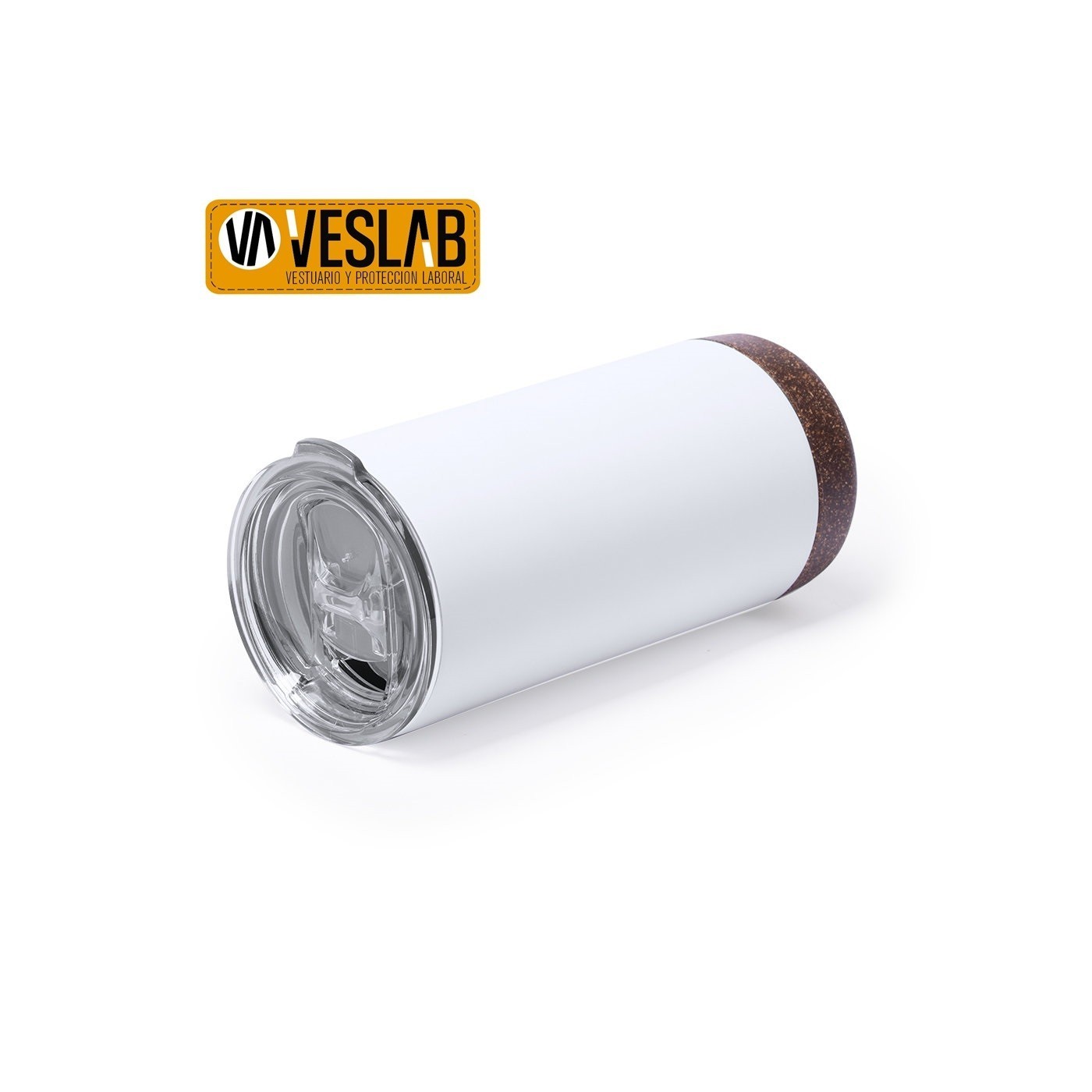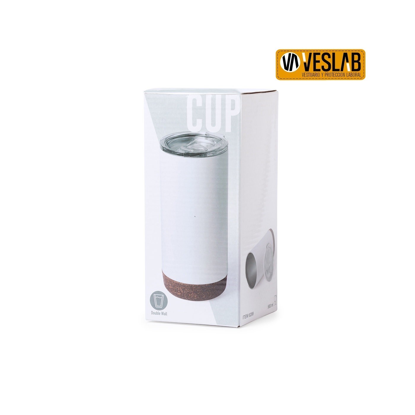 Glass in 500 ml capacity, from the nature line in combination with a natural cork base and a stainless steel body with a white finish.