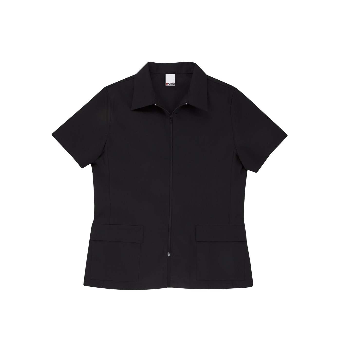 CON CREMALLERA CENTRAL, MANGA CORTA Y DOS BOLSILLOS DE TAPETA.