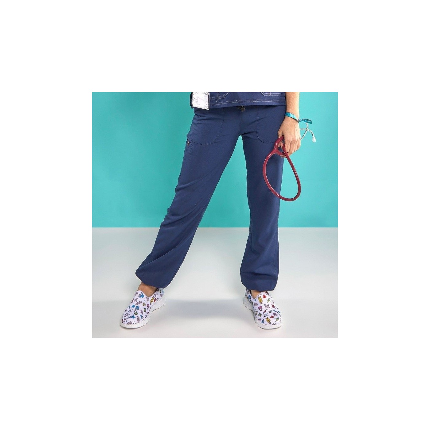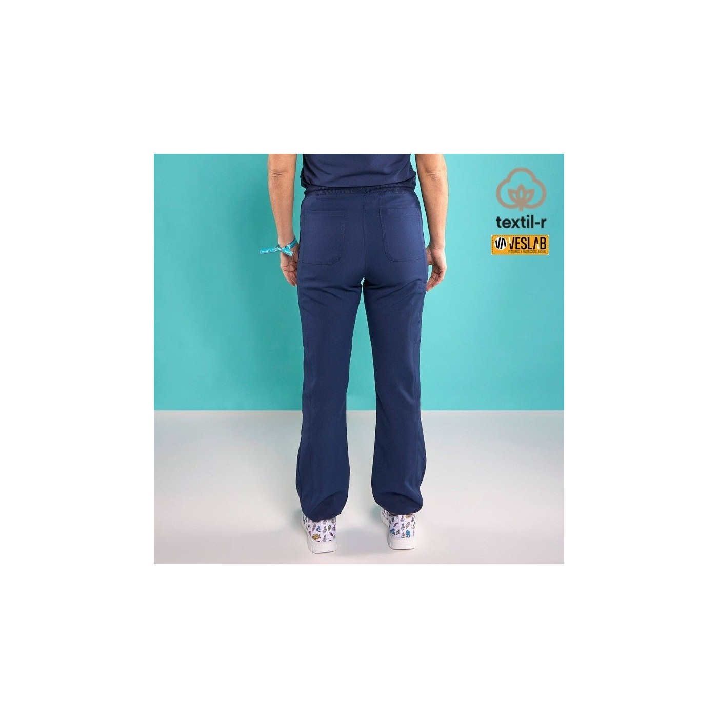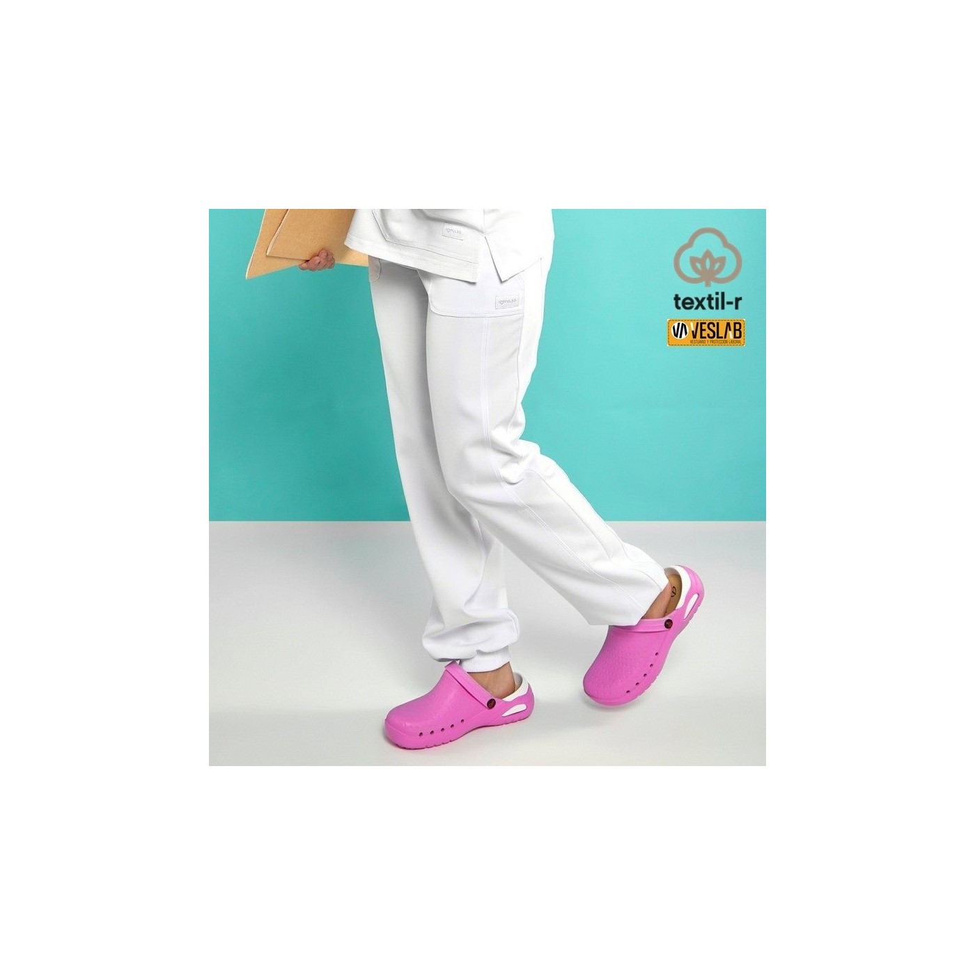 Highly elastic jogger-type sanitary pants for women. It has an elastic waist with a medium rise and an adjustable drawstring. 2 front, 2 side and 2 rear pockets, all functional. Decorative seams with a very flattering design. Inspired by technical sportswear to offer maximum comfort during the workday.