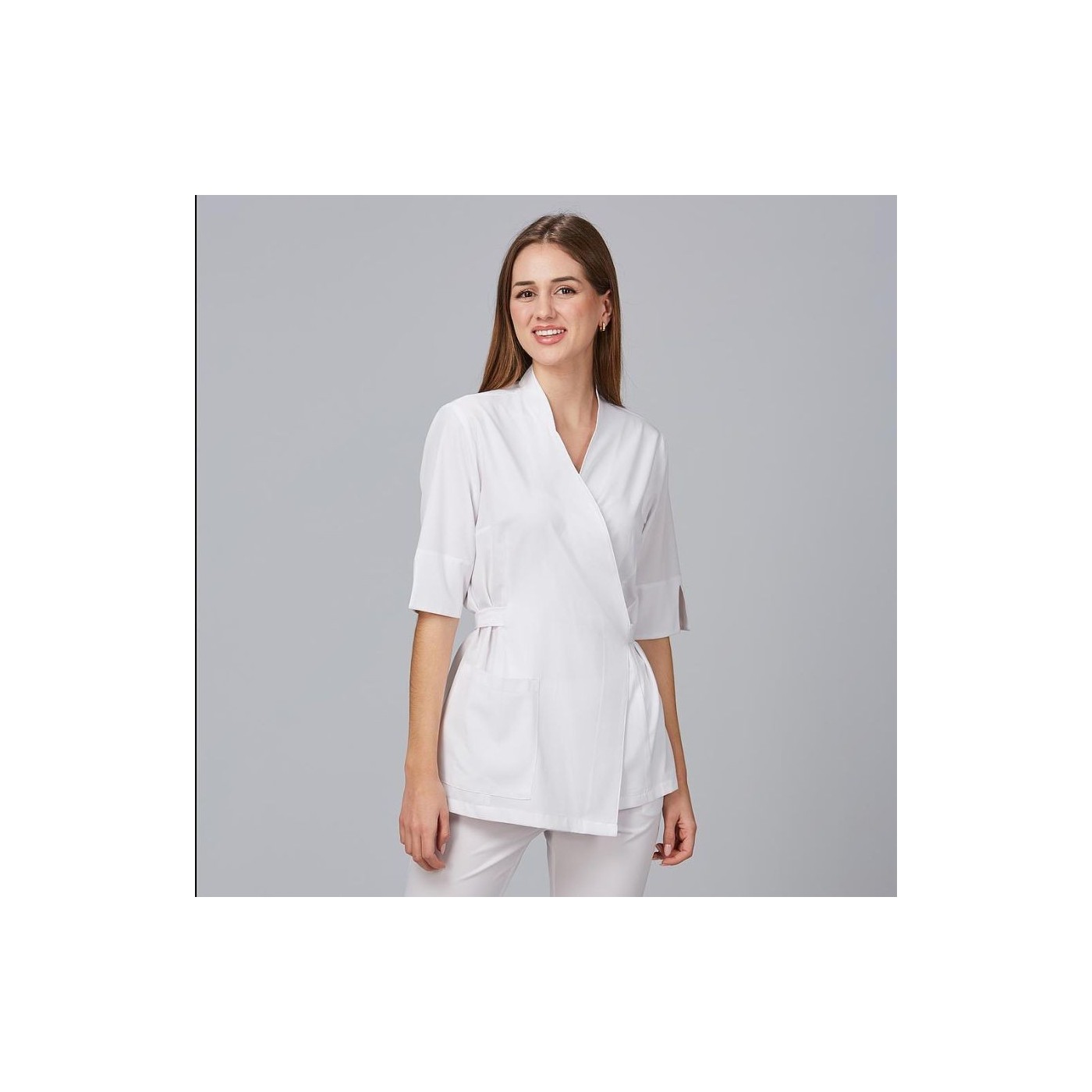 The Cardota women's kimono blouse is the ideal garment for those who work in hair salons, beauty centers, or spas and are looking for a professional, comfortable, and stylish uniform. Its elegant and functional design allows you to move freely and project an impeccable image throughout the day.