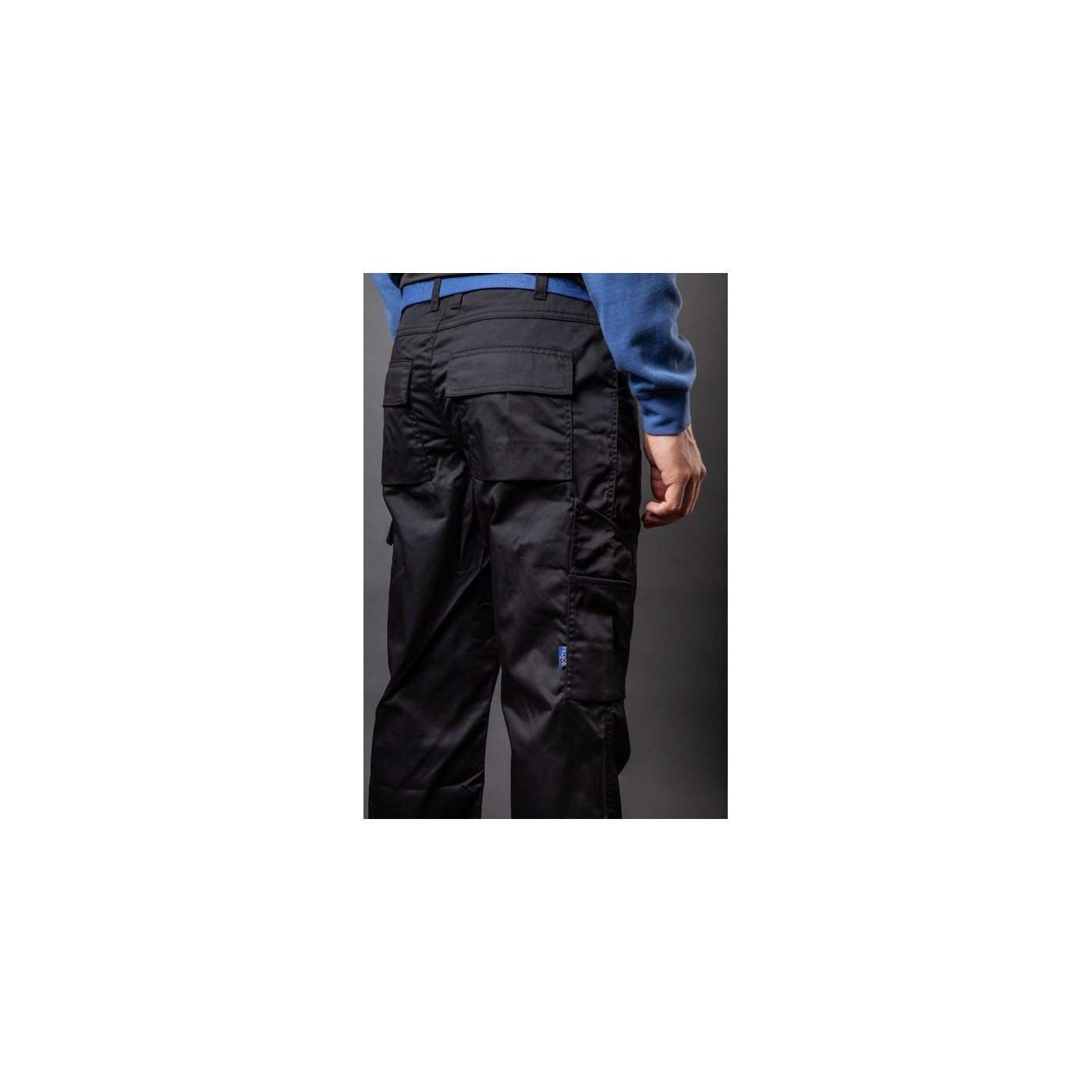 Workwear trousers with highly functional pockets, including flap sides and Velcro closure. Scandinavian size C42-C64 that can be extended about 5 cm.