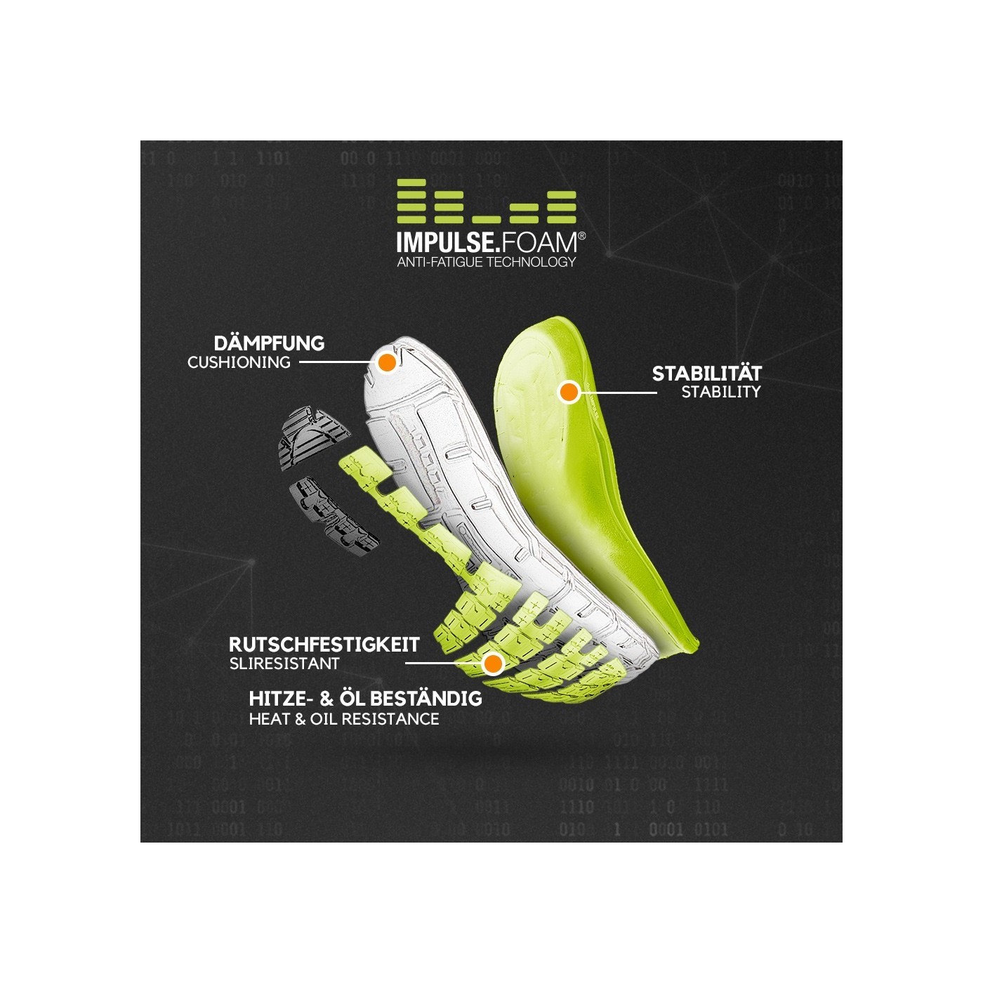 Sola: MOTION IMPULSE - Sola de goma antilliscant i resistent a la calor de 300°C amb entresola d'IMPULSE.FOAM® en dues densitats diferents per a un excel·lent amortiment, estabilitat i confort